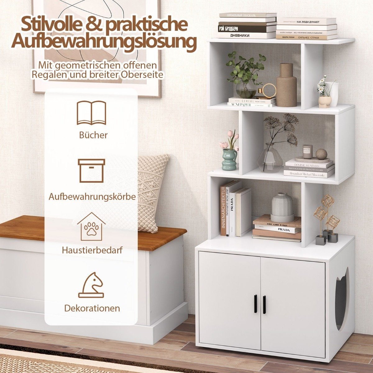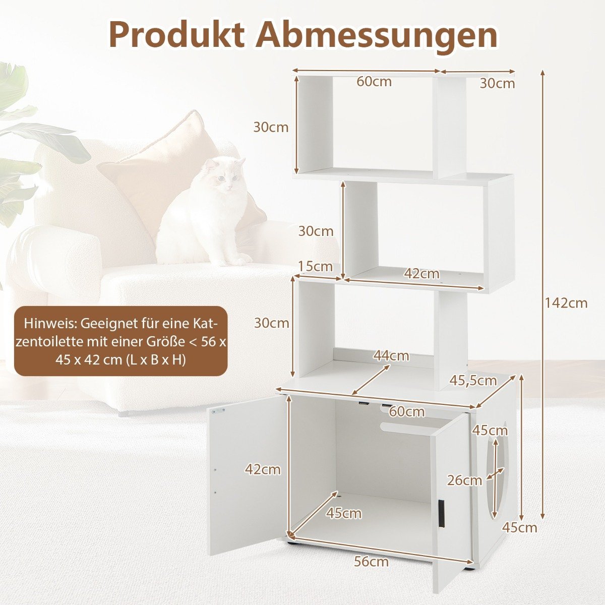 Spintelė su lentynomis kačių tualetui (Balta)