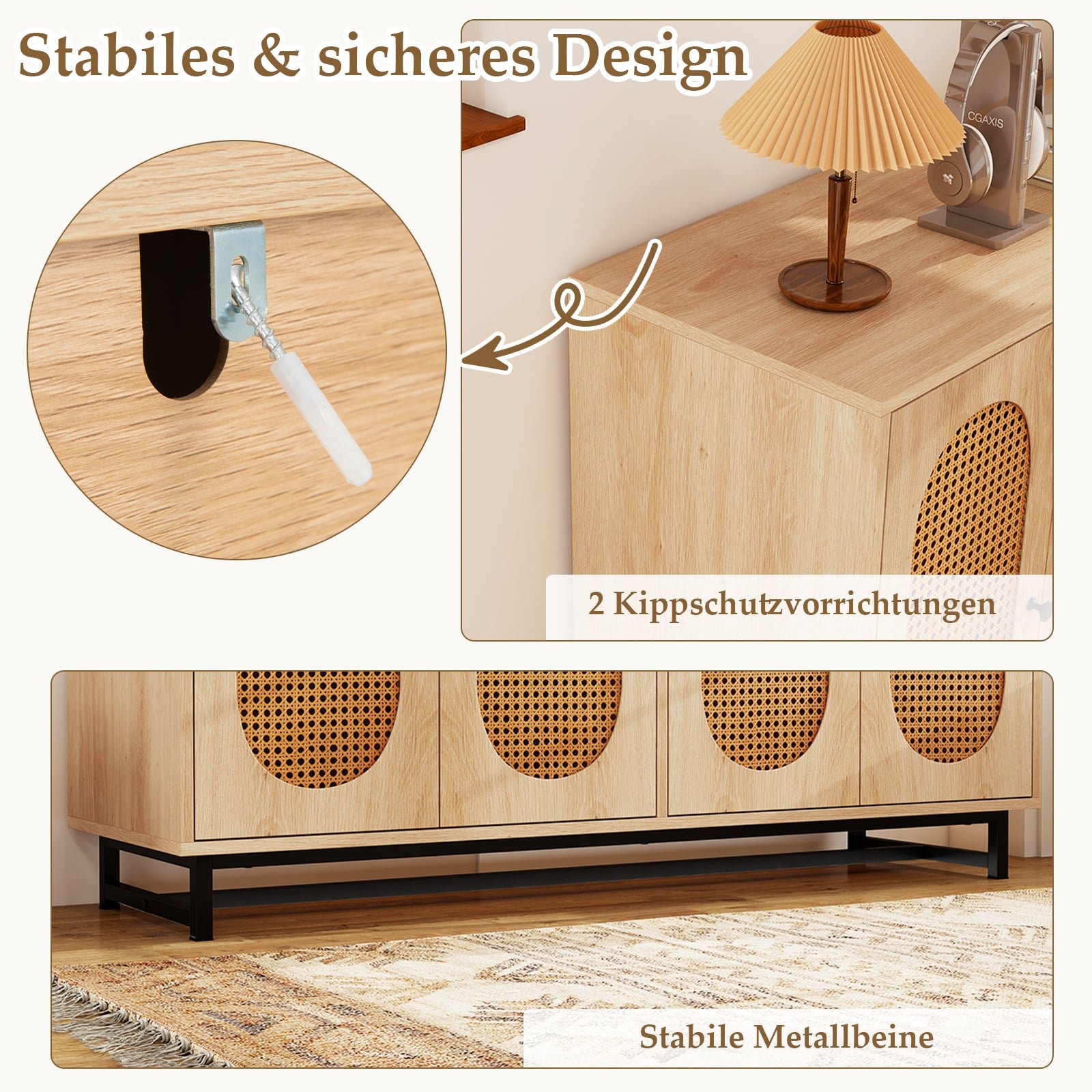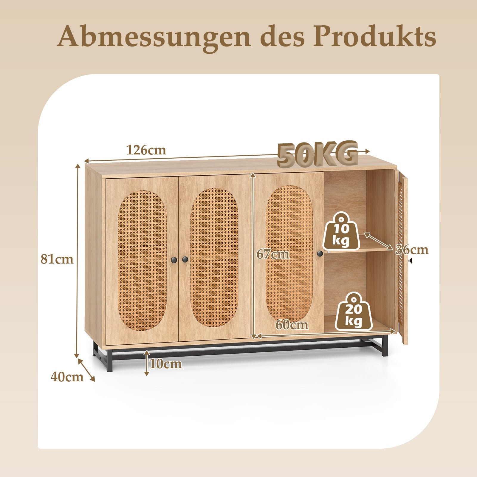 Ši elegantiška indauja puikiai papuoš bet kurią svetainę, valgomąjį ar virtuvę, suteikdama gausybę vietos daiktams laikyti. Jos erdvus viršus idealiai tinka dekoro elementams eksponuoti ar gėrimams patiekti, o viduje esančios reguliuojamos lentynos leidžia lanksčiai pritaikyti erdvę Jūsų poreikiams. Derinant stilingą dizainą su tvirta konstrukcija ir apsauga nuo apvirtimo, ši indauja garantuoja ilgaamžiškumą ir saugumą.