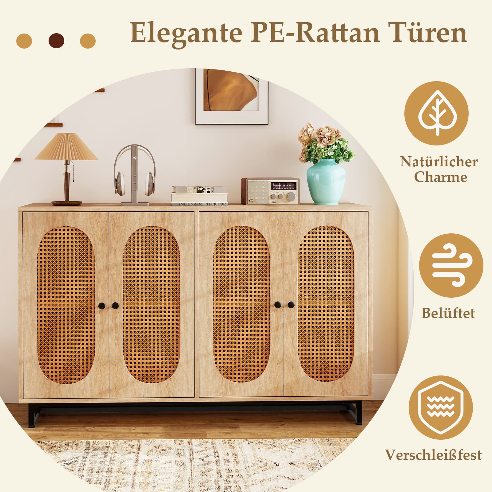 Spintelė su PE rotango durimis ir reguliuojamomis lentynomis (Natūrali)