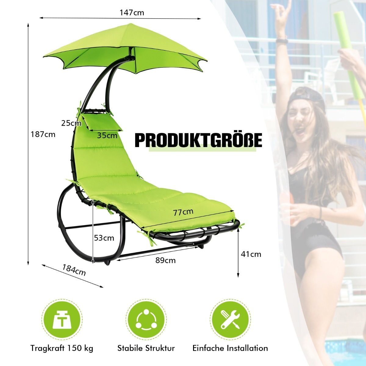 Patirkite nepakartojamą atsipalaidavimą su mūsų naujuoju lauko gultu. Jo unikali svyruojanti konstrukcija ir ergonomiškas dizainas malšina nugaros ir juosmens įtampą, o minkštas apmušalas bei galvos atrama užtikrina aukščiausio lygio komfortą. Tvirta plieno konstrukcija ir apsauga nuo apvirtimo garantuoja stabilumą ir saugumą.