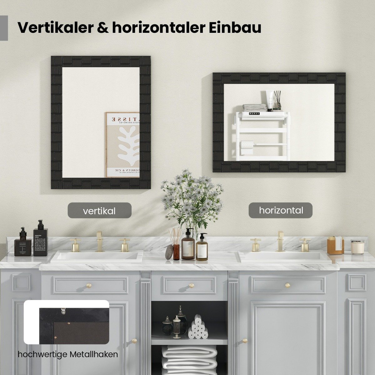 - Galima tvirtinti vertikaliai arba horizontaliai