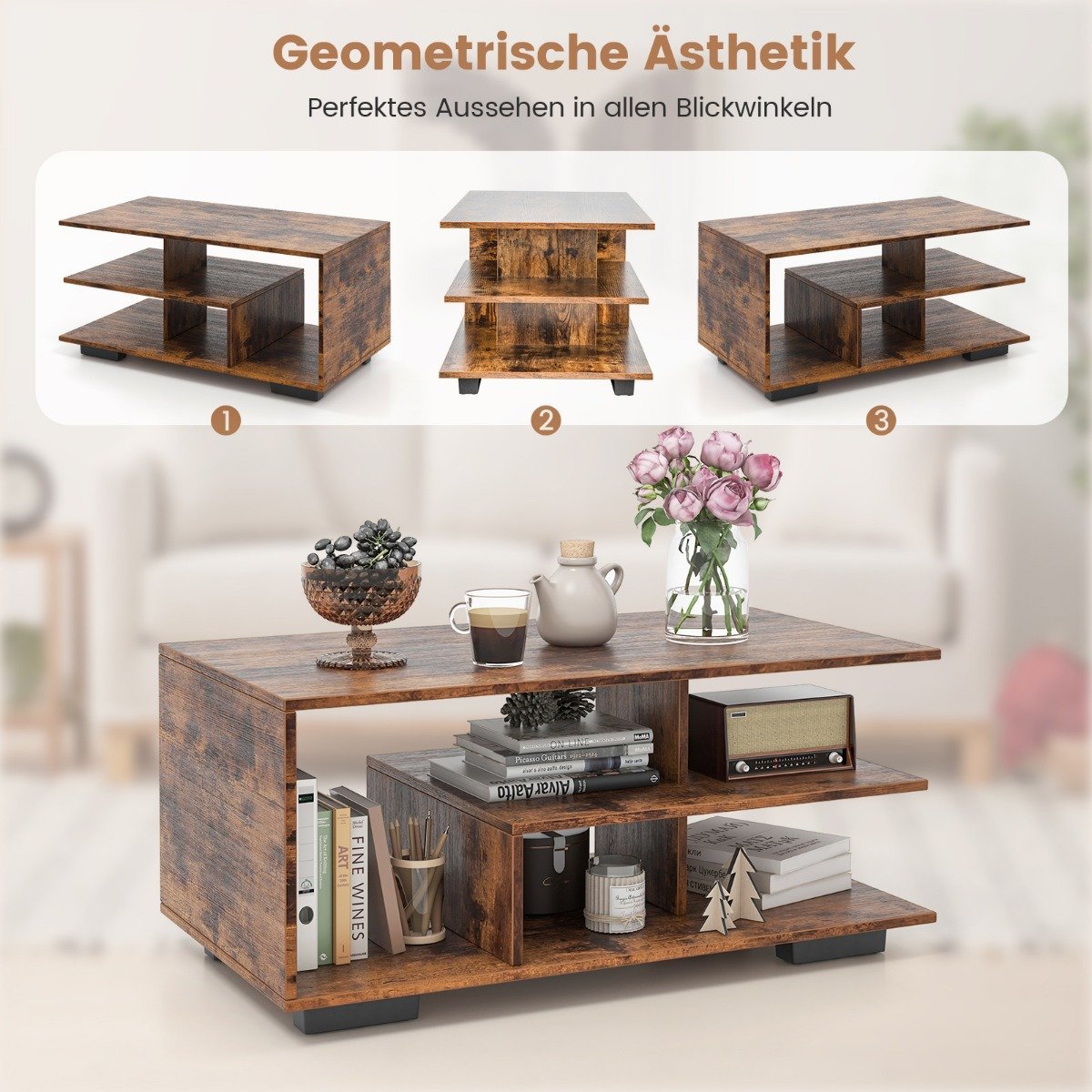 Atnaujinkite savo namų interjerą su šiuo elegantišku ir stilingu geometrinio dizaino kavos staliuku. Jo unikali L formos vidurinė lentyna suteikia subtilų geometrinį akcentą, kuris neabejotinai sužavės jūsų svečius. Dėl praktiško 3 lygių dizaino turėsite pakankamai vietos pasidėti mėgstamiausias vazas, dekoratyvinius daiktus ar net nešiojamąjį kompiuterį.