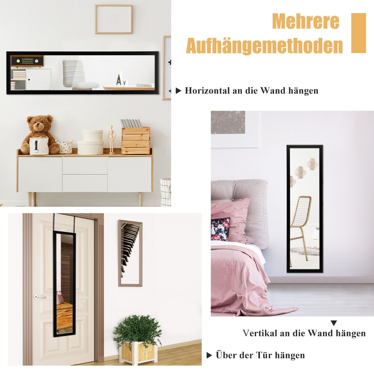 - Universalūs tvirtinimo būdai: galima kabinti ant durų, horizontaliai arba vertikaliai ant sienos.