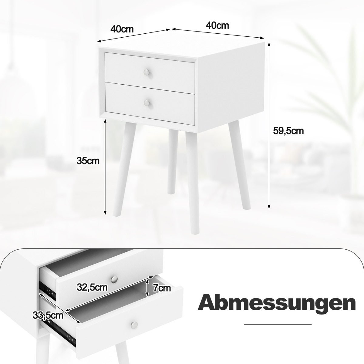 Stalelis su medinėmis kojelėmis ir dviem stalčiais (Balta)