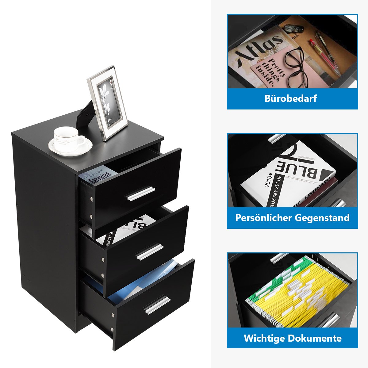 Stalinis 3 stalčių konteineris (Juoda)