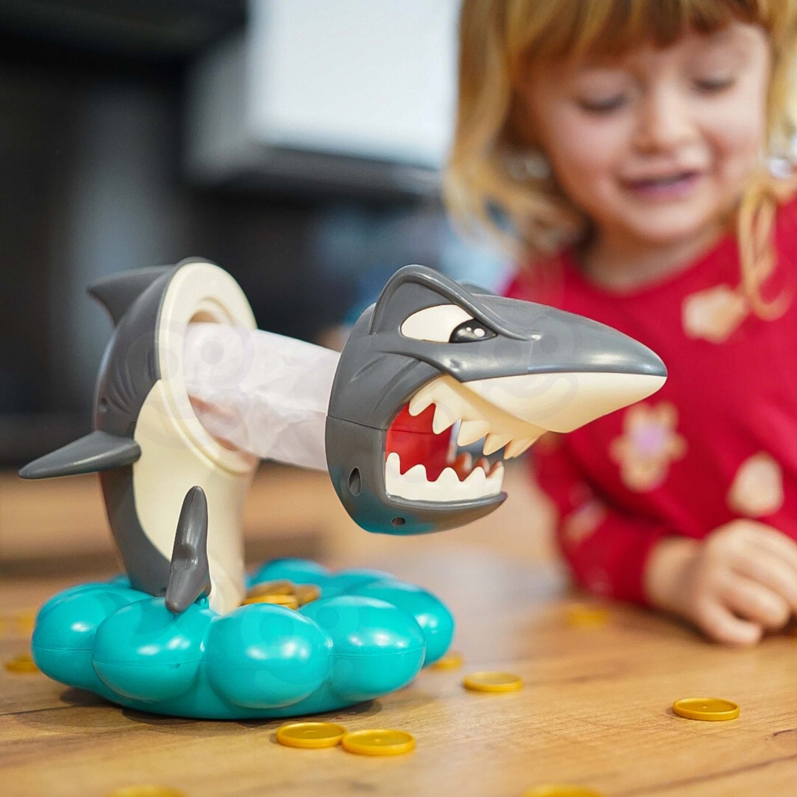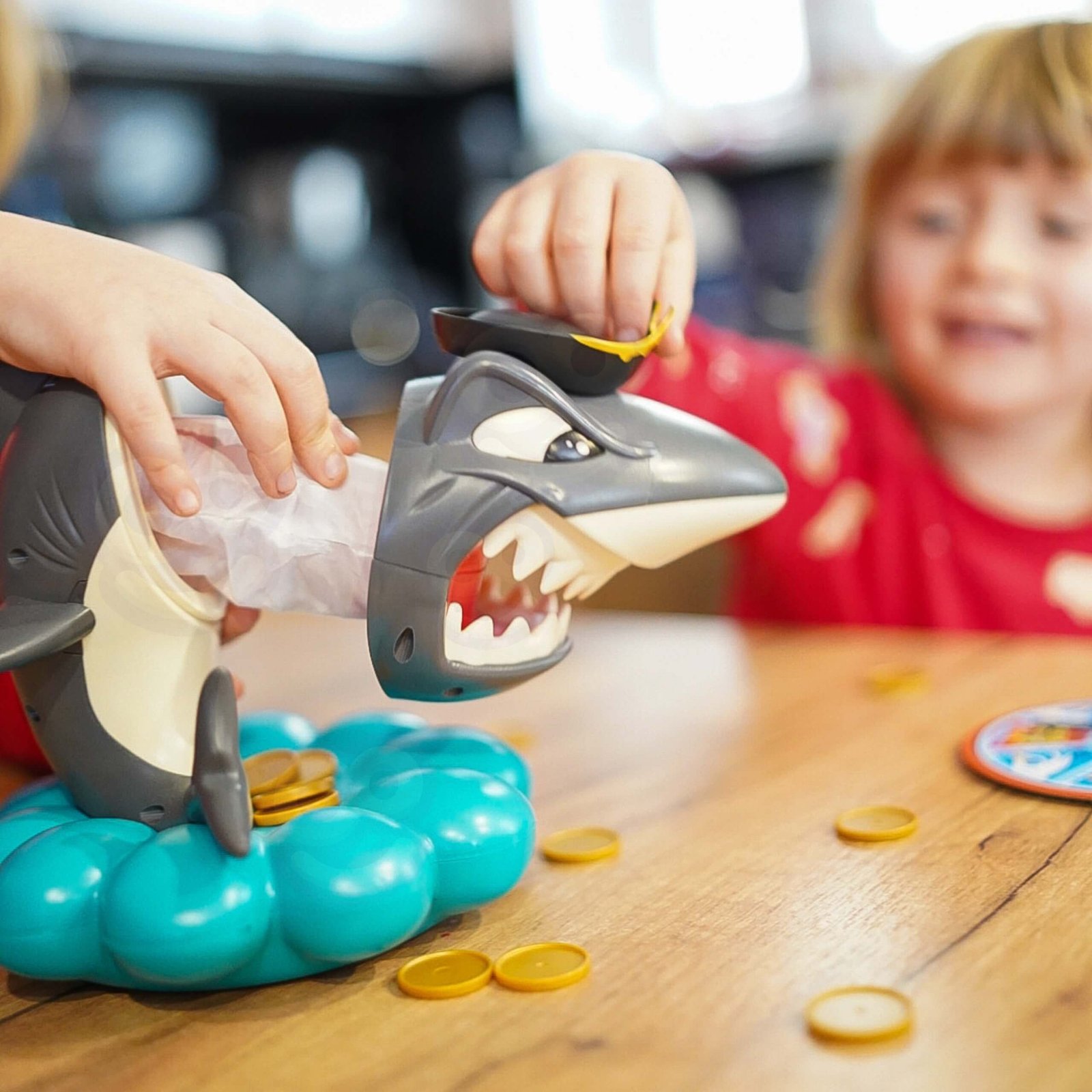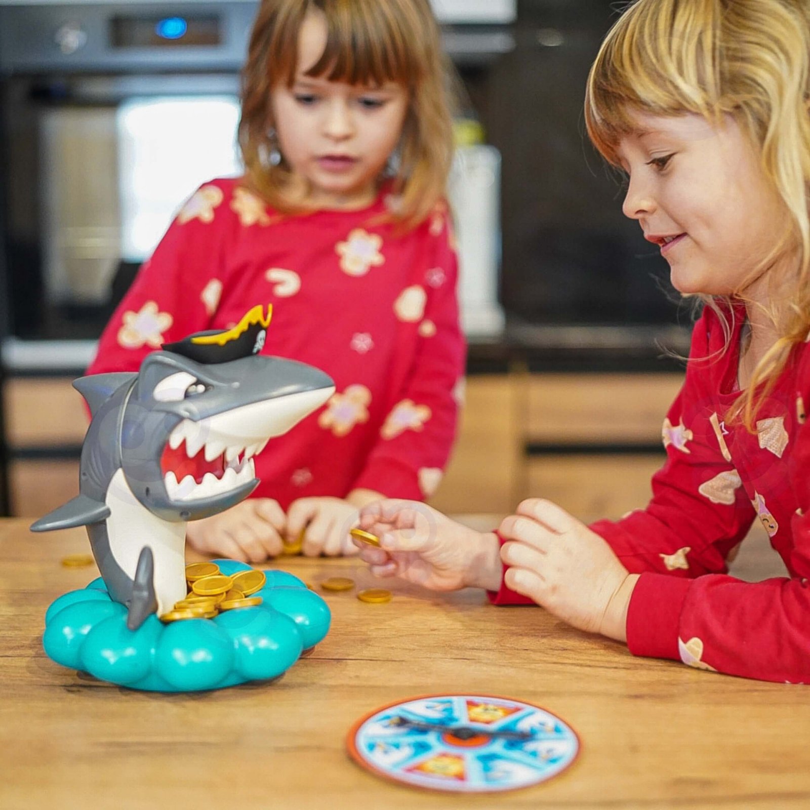 Supilkite visas auksines monetas į ryklio burną. Žaidėjai paeiliui suka ratą su rodykle, nustatydami, kiek monetų reikia ištraukti. Pagal išsukto skaičiaus reikšmę, žaidėjai stengiasi atsargiai išimti monetas iš ryklio nasrų. Ryklys yra labai budrus ir bet kurią akimirką gali staiga užsičiaupti! Jei taip atsitiks, žaidėjas, kurio ėjimo metu ryklys užsičiaupė, pralaimi. Ryklys uoliai saugo savo piratų lobį, todėl imant monetas jis nervingai judina uodegą. Įjungus žaislą, atkuriami vandens ošimo ir burbuliukų garsai, kurie džiugins visus vaikus.