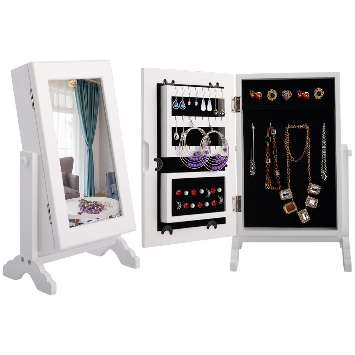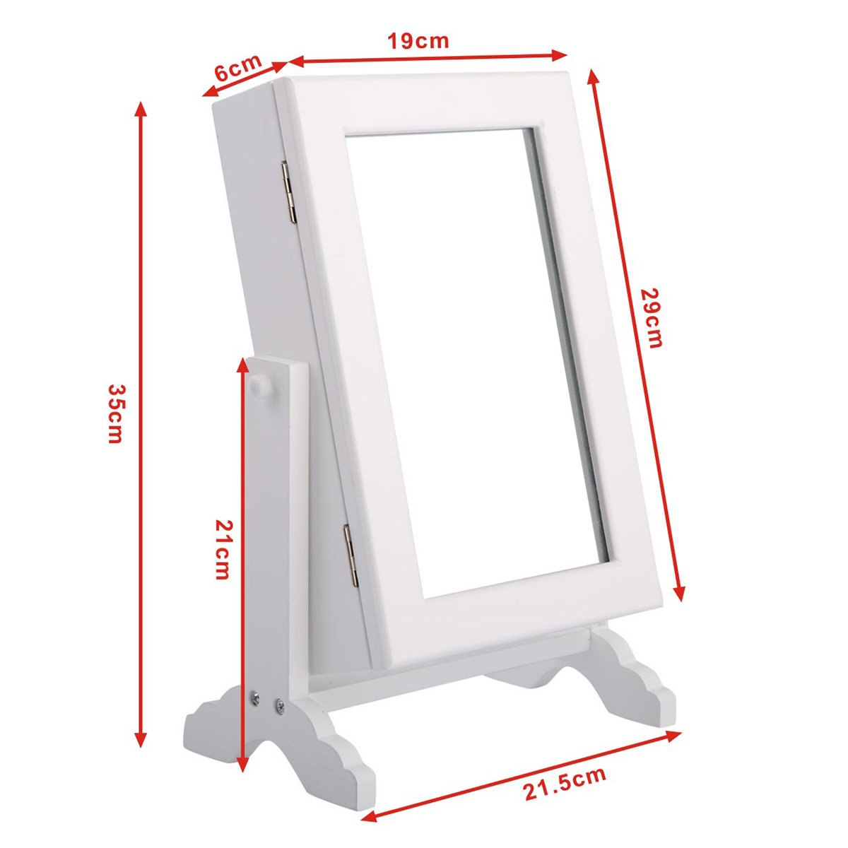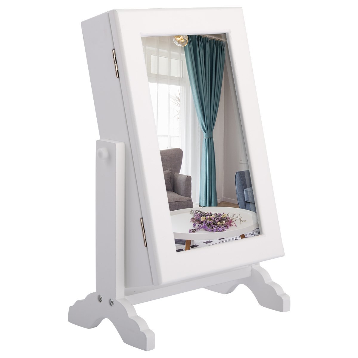 Stalviršio papuošalų spintelė su veidrodžiu (Balta)
