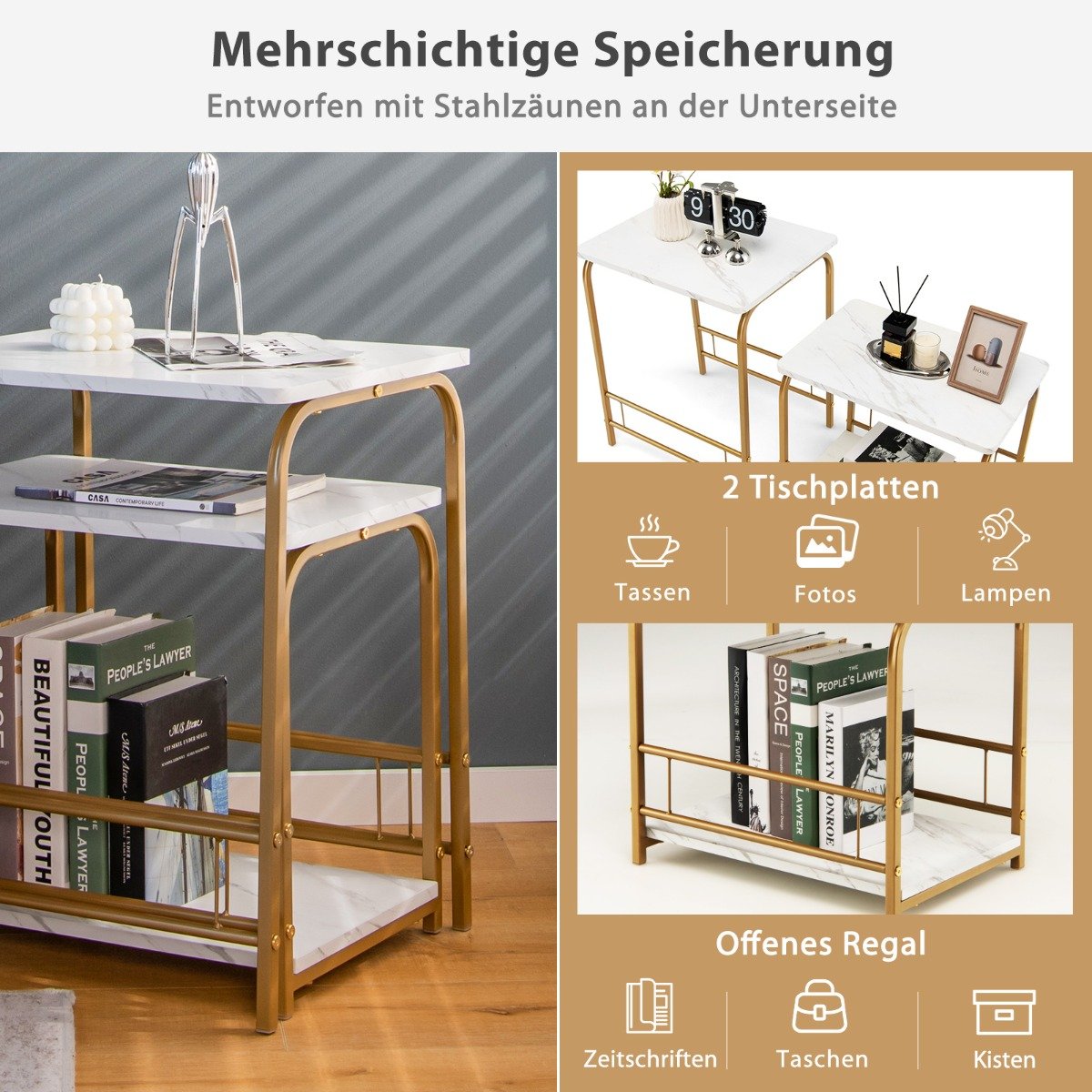 Šis dviejų staliukų komplektas jūsų namams suteiks elegancijos ir praktiškumo. Sukurtas taip, kad puikiai tilptų net ir nedidelėse erdvėse, jis gali būti naudojamas kartu arba atskirai, suteikdamas maksimalų lankstumą jūsų interjero dizainui.