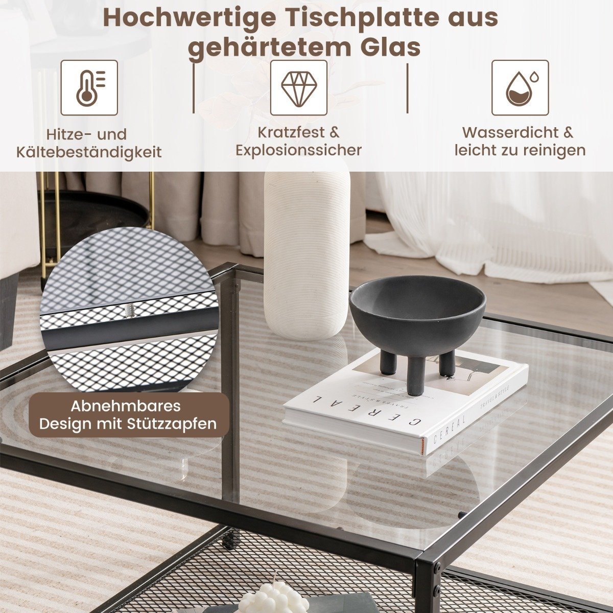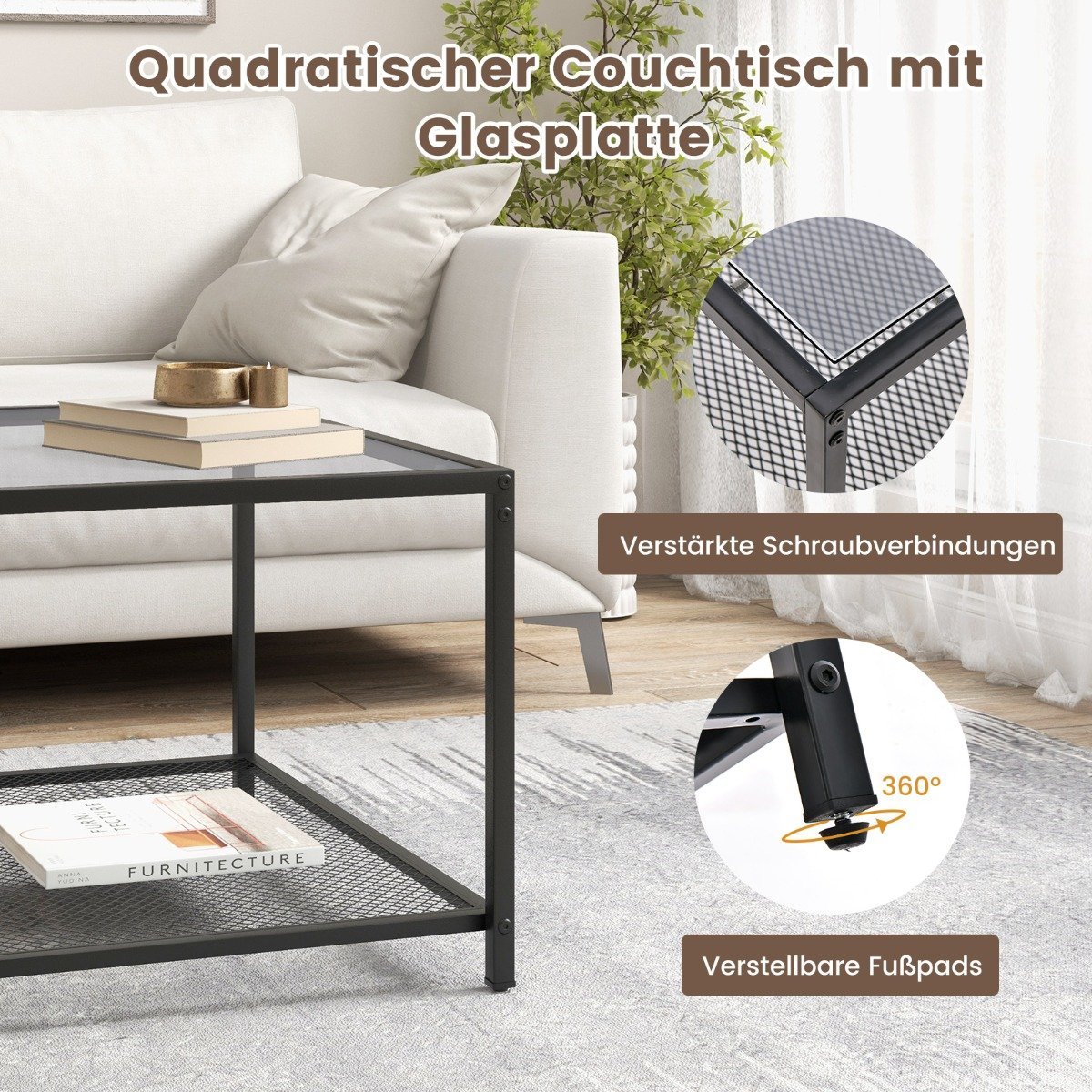 - 1 x Kvadratinis stiklinis staliukas