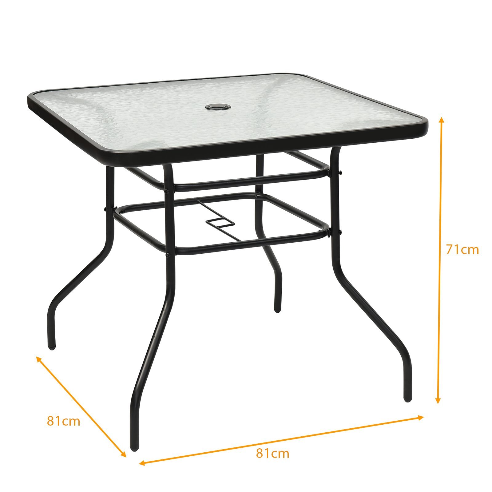 Stalviršis su skėčio anga ir grūdintu stiklu lauko stalams (Juoda)