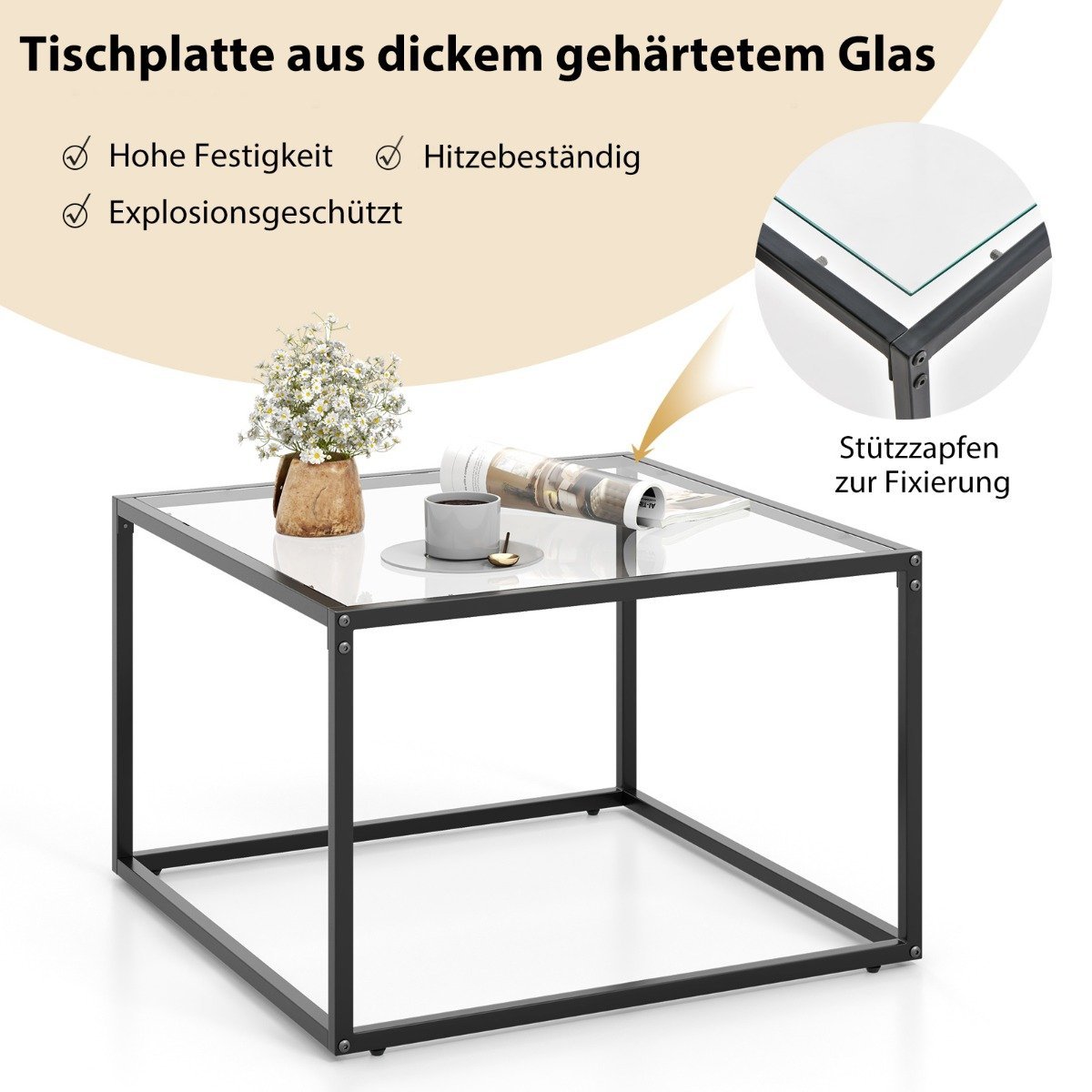 Atnaujinkite savo namų estetiką su šiuo moderniu stiklo kavos staliuku. Jo karščiui atsparus ir lengvai prižiūrimas stiklinis stalviršis bei tvirtas metalinis rėmas užtikrina ilgaamžiškumą.