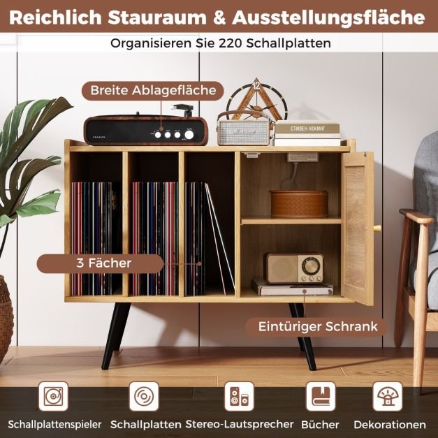 - 3 atviros lentynos, skirtos laikyti iki 220 plokštelių.