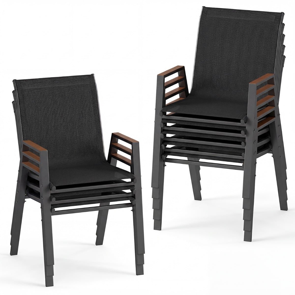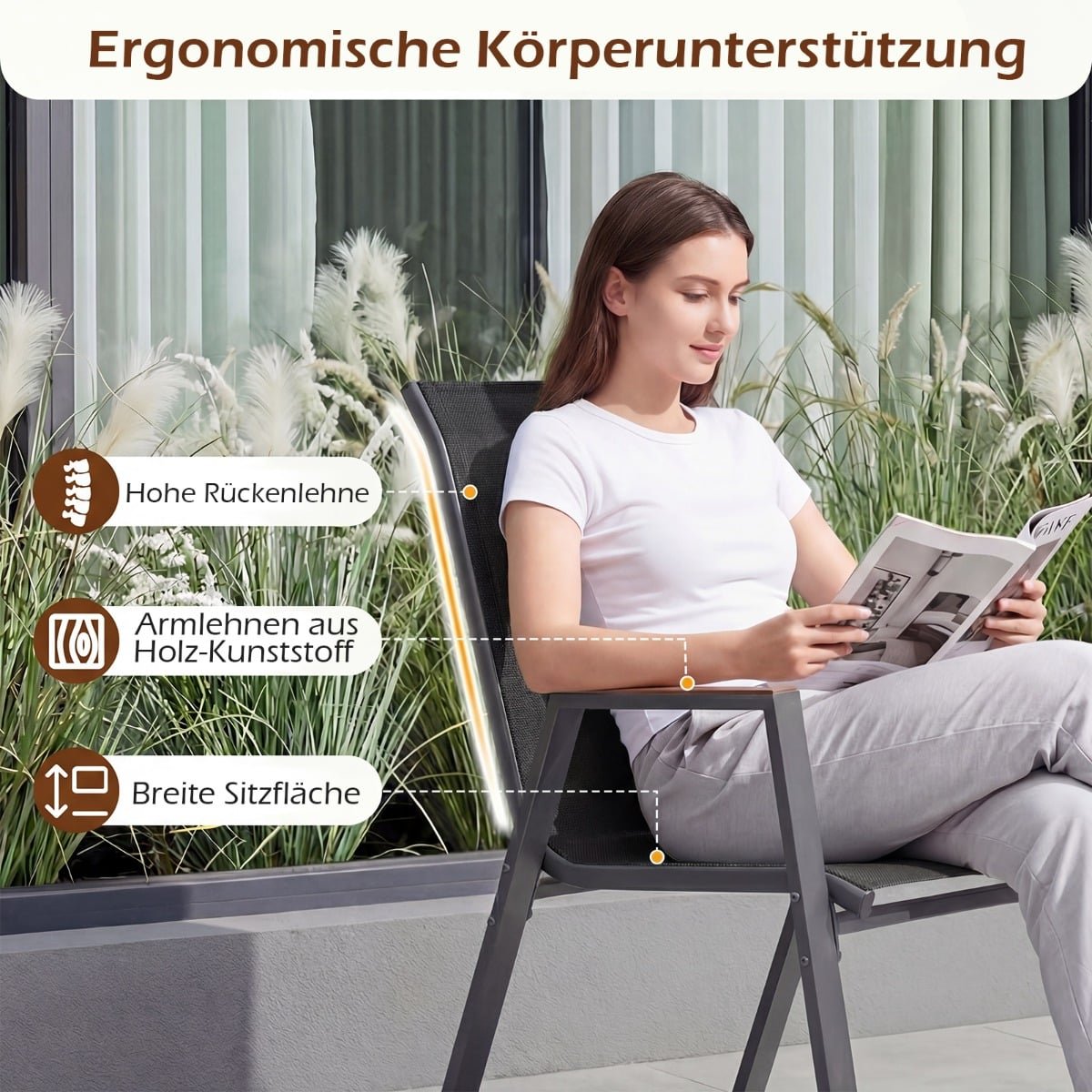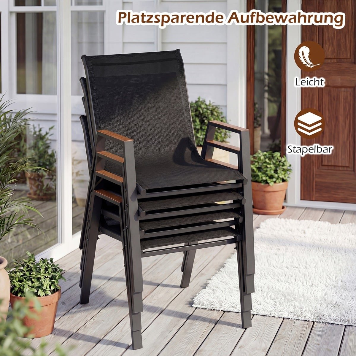 Sukraunamų sodo kėdžių komplektas su kvėpuojančiu Teslin audiniu 8 vnt (Juoda)