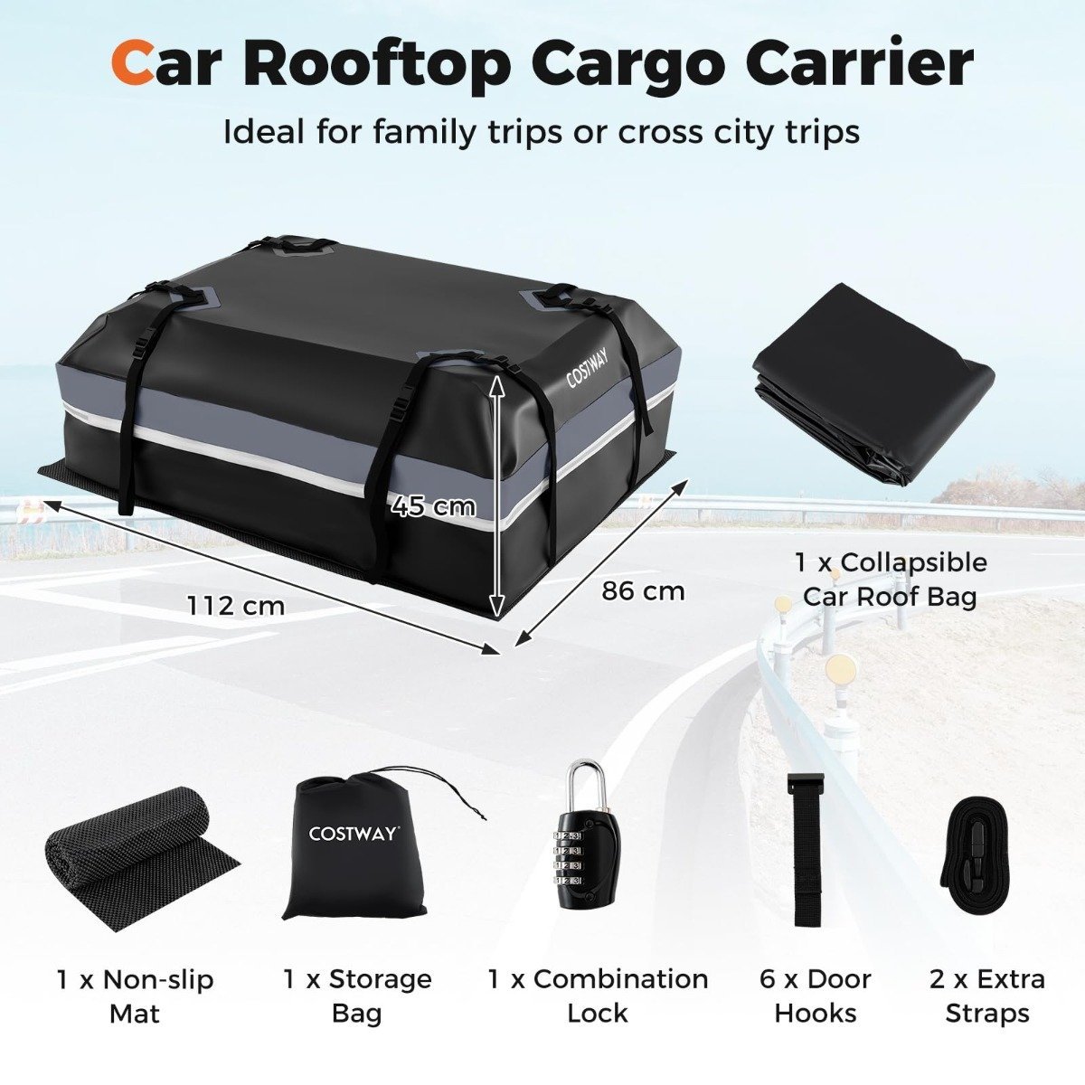 Kiekviena kelionė taps patogesnė ir ramesnė su šia 450 litrų talpos automobiline stogo bagažine. Erdvi ir funkcionali, ji suteikia papildomos vietos didesniam bagažui ar sporto įrangai. Patvarus, vandeniui ir plyšimui atsparus PVC audinys užtikrins, kad jūsų daiktai bus saugūs ir sausi bet kokiu oru. Ši universali bagažinė lengvai tvirtinama prie daugumos automobilių, tiek turinčių stogo skersinius, tiek ir neturinčių.