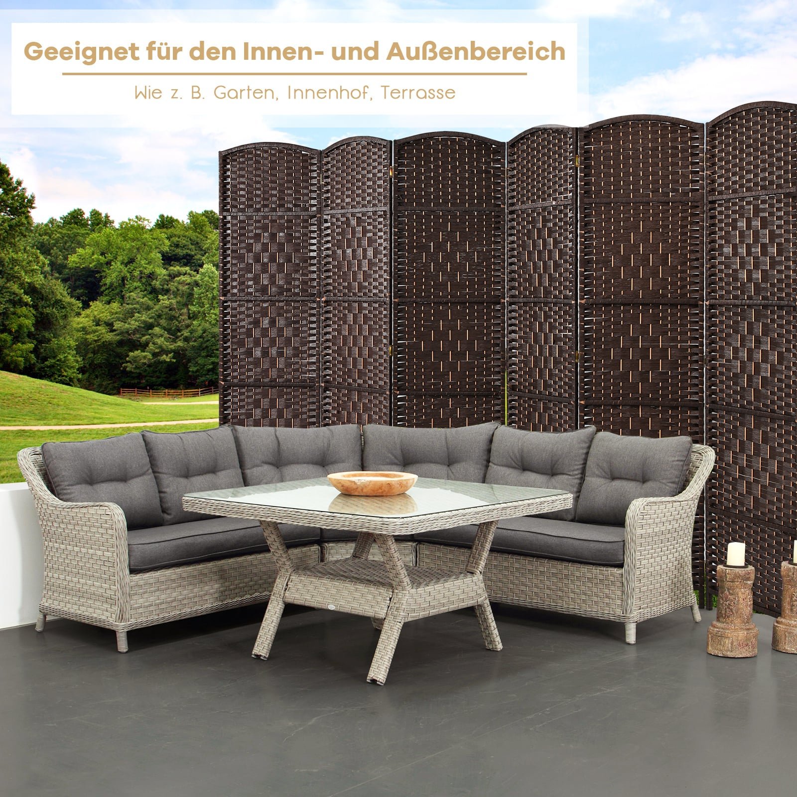 Šis elegantiškas 6 dalių erdvės daliklis ne tik suteikia jūsų erdvei išskirtinio stiliaus, bet ir sukuria funkcionalų privatumą. Pagamintas su tvirtu medienos rėmu ir pasižymintis rankomis austu raštu, jis lengvai pritaikomas ir perkeliamas dėl lankstaus ir lengvo dizaino. Idealiai tinka tiek moderniems, tiek tradiciniams interjerams, efektyviai padeda struktūrizuoti ir apibrėžti jūsų erdvę namuose ar biure.