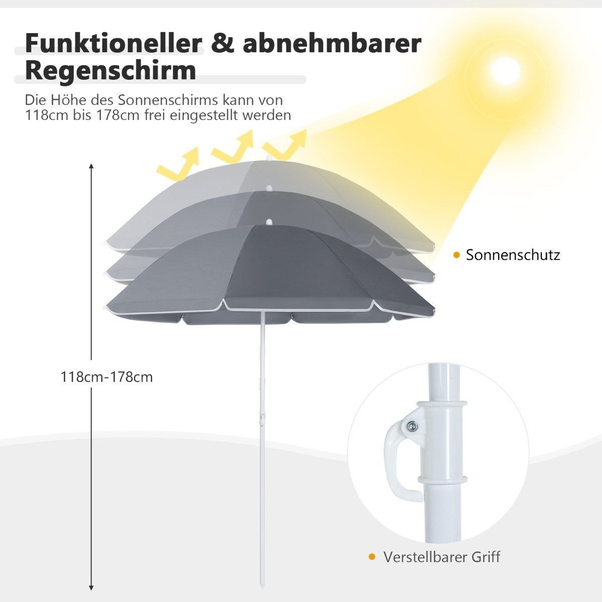 - Su nuimamu stogeliu, mažu staliuku ir puodelių laikikliais patogiam poilsiui.