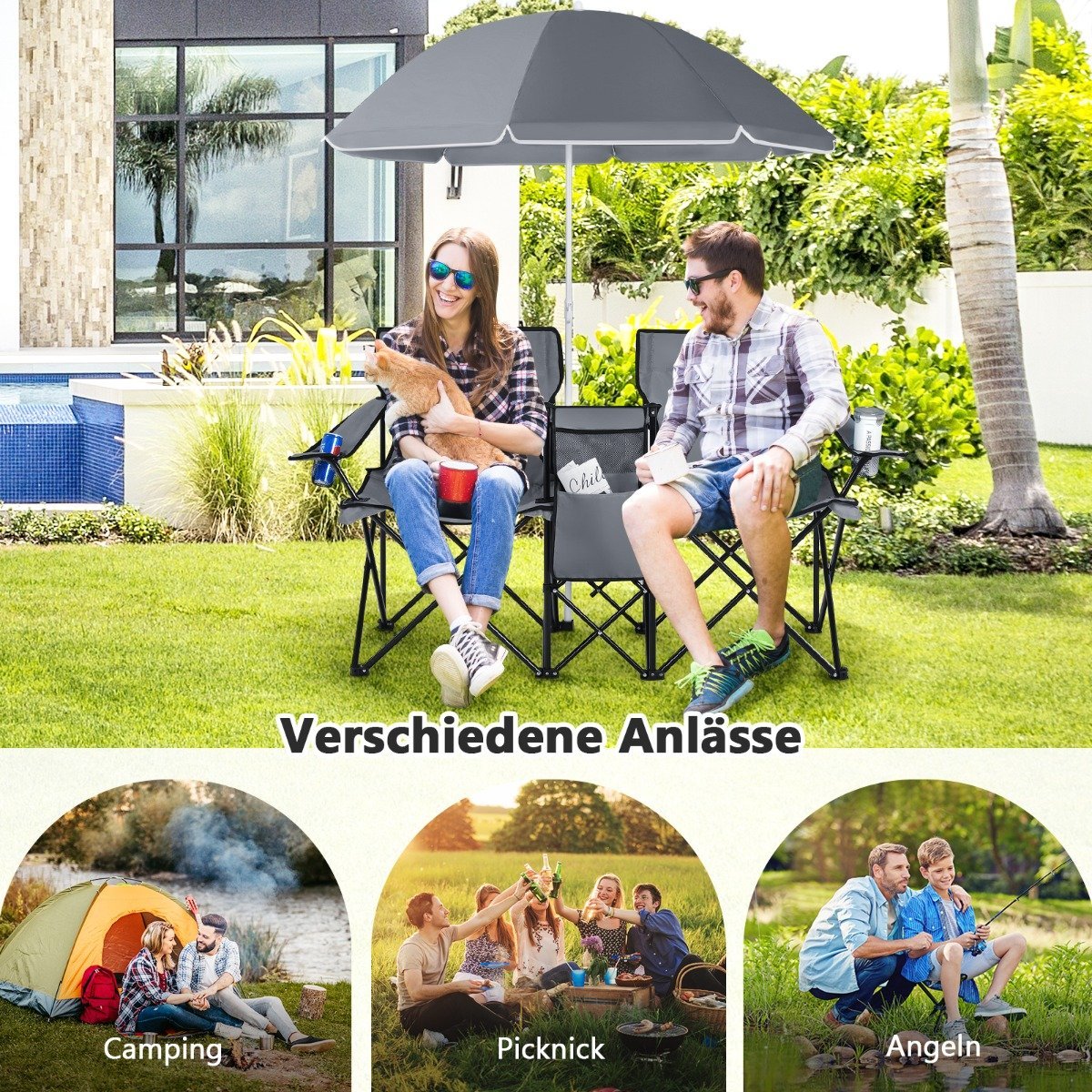 Sulankstoma dviejų kempingo kėdžių sėdynė su stogeliu ir staliuku (Pilka)