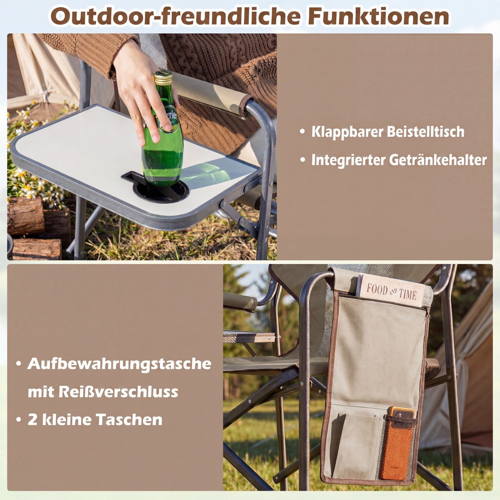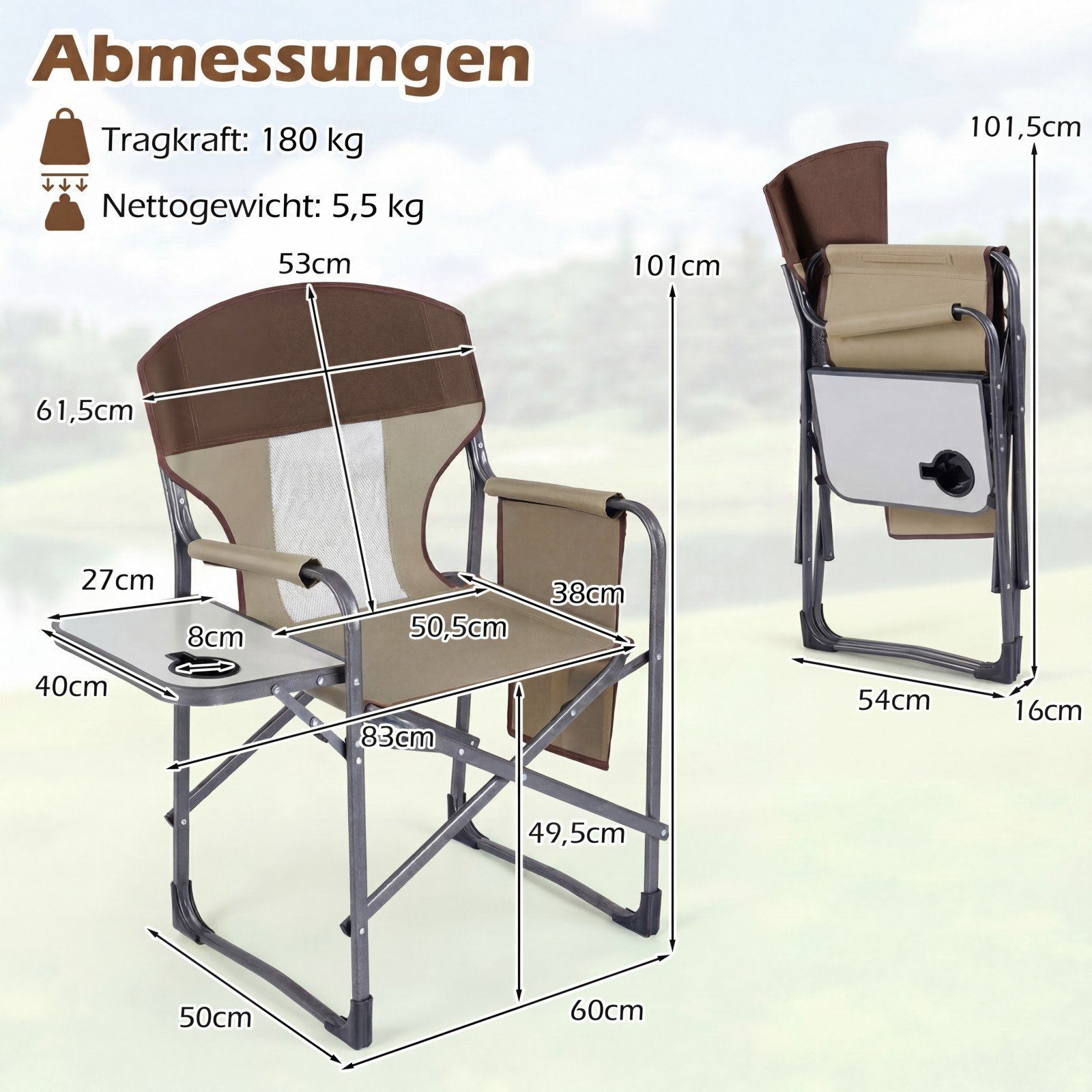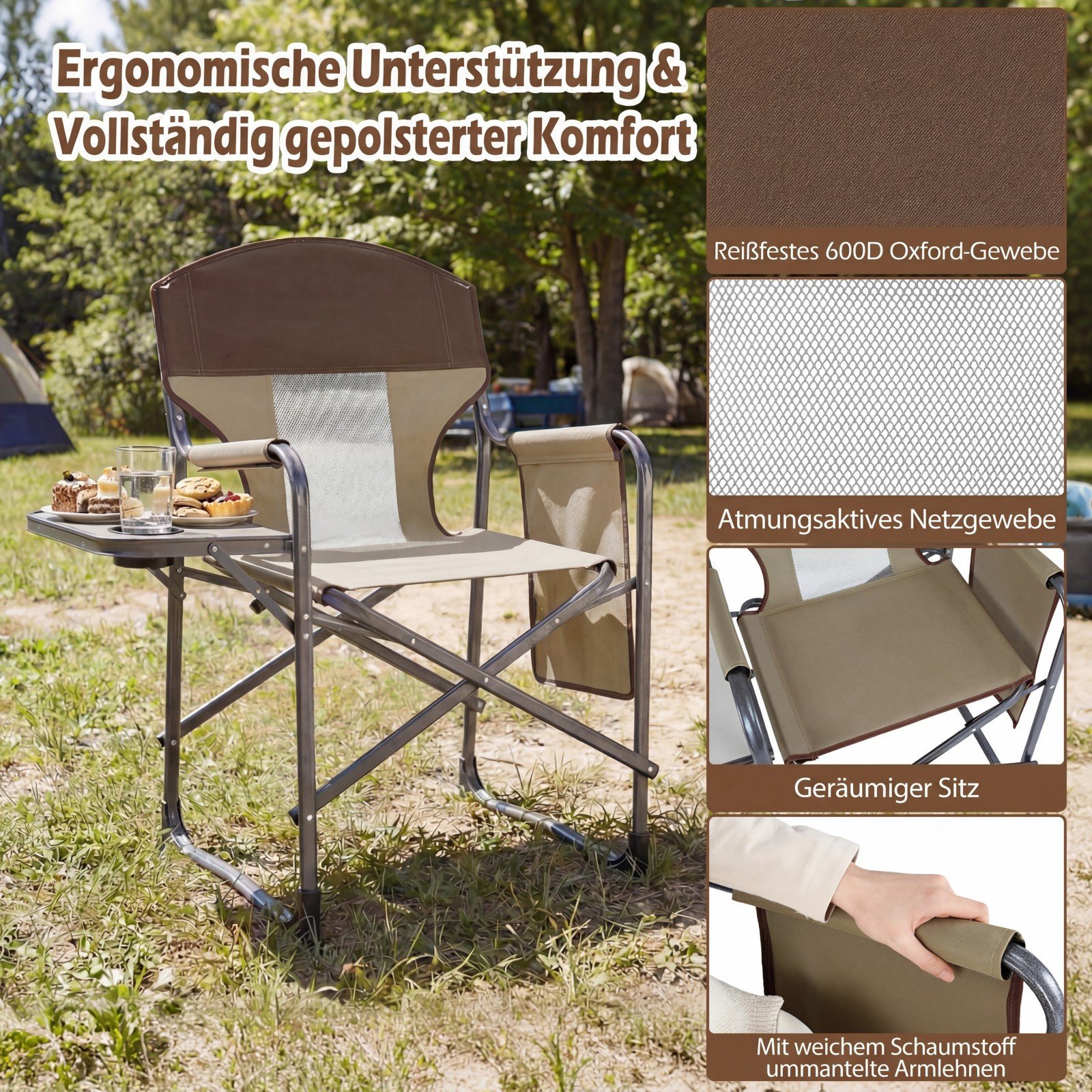 Mėgaukitės patogiu ir nerūpestingu laiku gamtoje su šia funkcionalia sulankstoma režisieriaus kėde. Jos ergonomiškas dizainas su plačia sėdyne ir atlošu užtikrina maksimalų komfortą. Tvirtas metalinis rėmas garantuoja stabilumą ir ilgaamžiškumą. Integruotas šoninis staliukas, gėrimų laikiklis ir praktiškos kišenės smulkiems daiktams leidžia visada turėti reikalingus daiktus po ranka. Ši kėdė idealiai tinka bet kokiai veiklai lauke – nuo stovyklavimo iki žvejybos.
