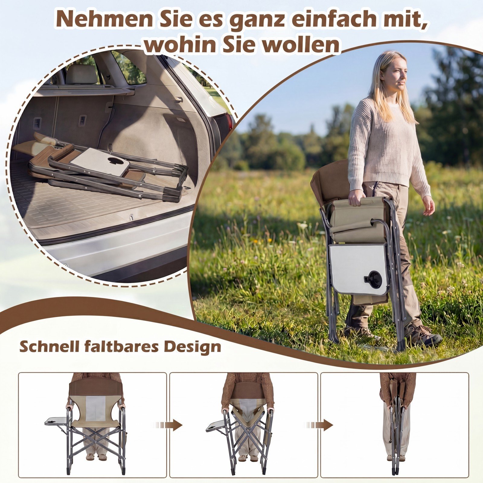 Sulankstoma kėdė su šoniniu staliuku ir gėrimų laikikliu (Ruda)