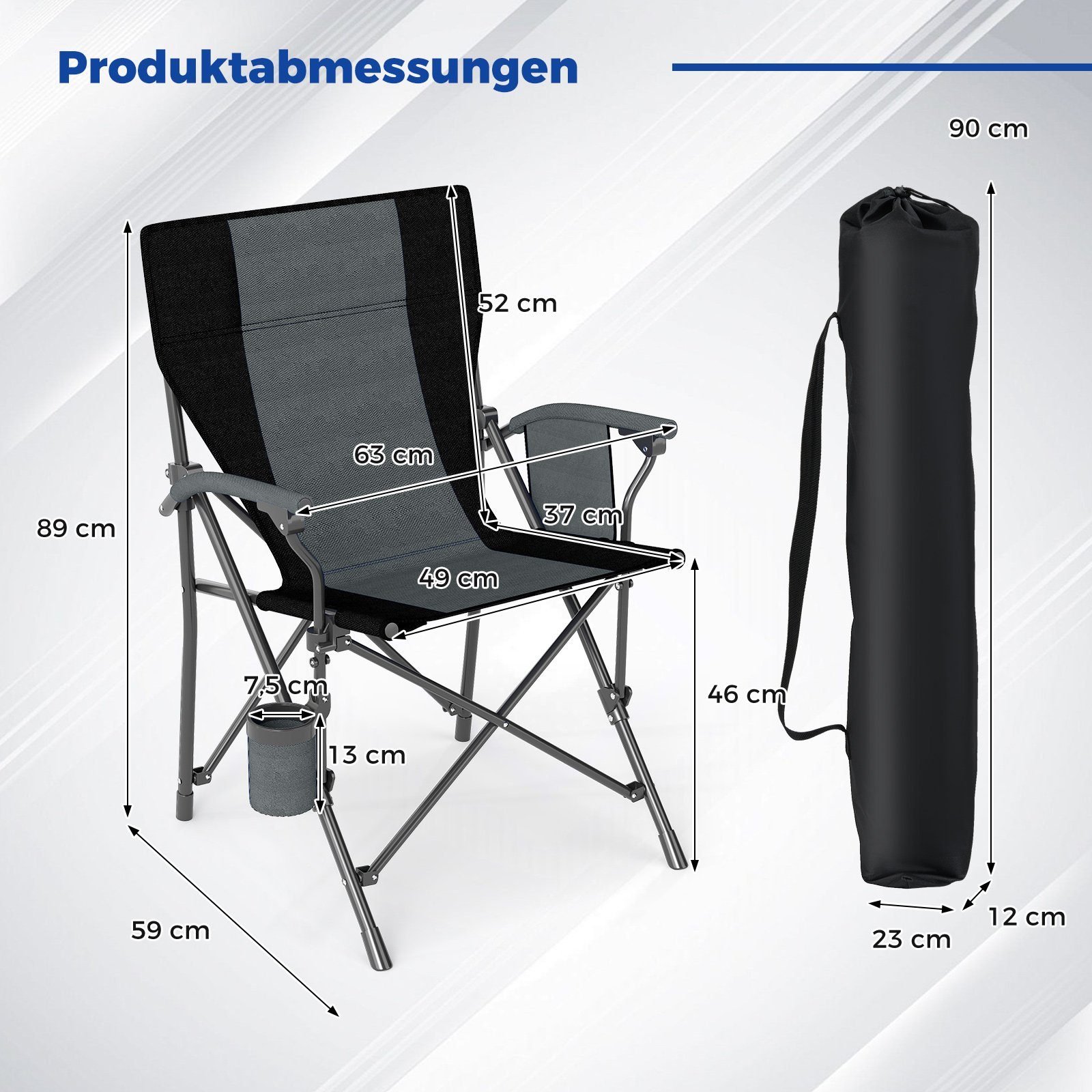 Sulankstoma kempingo kėdė su puodelio laikikliu ir šonine kišene (Juoda)