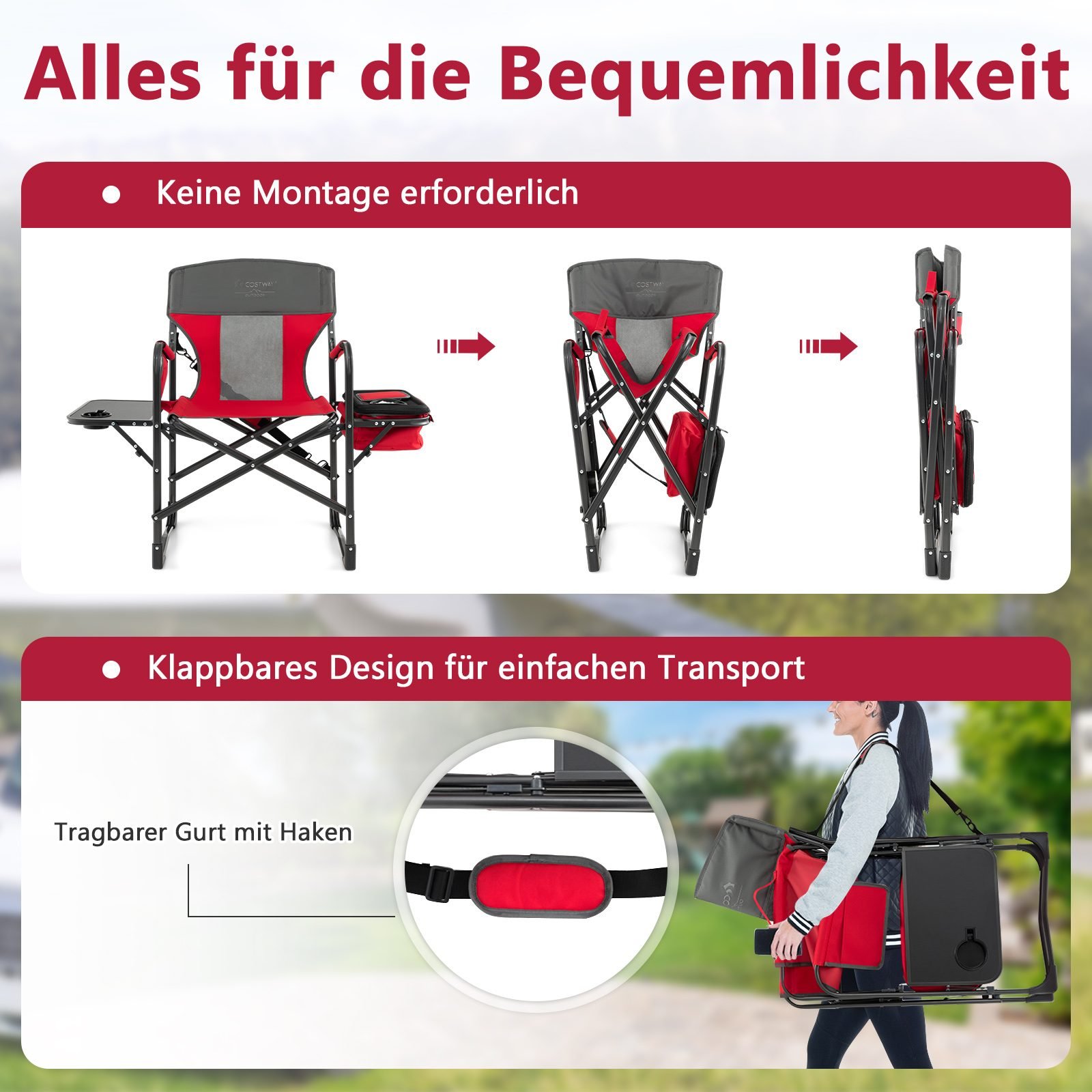 Sulankstoma kempingo kėdė su šoniniu staliuku ir aušinančiu maišeliu (Raudona)