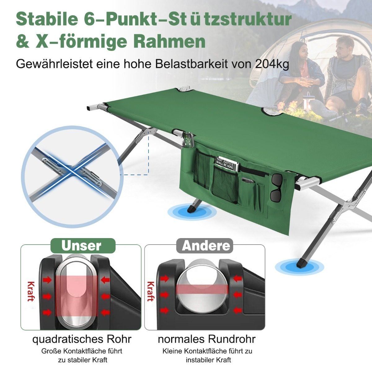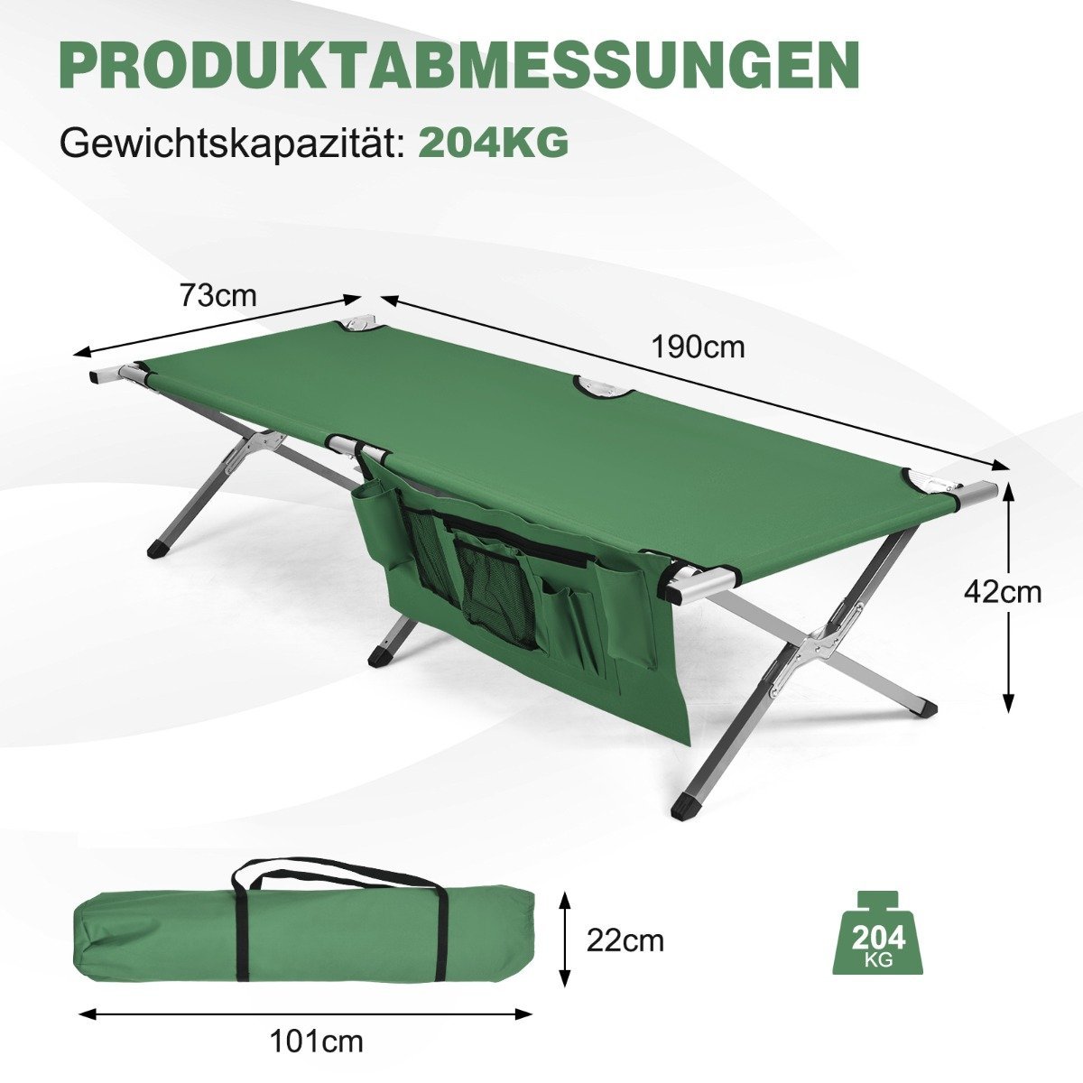 Sulankstoma kempingo lova su šonine kišene (Žalia)
