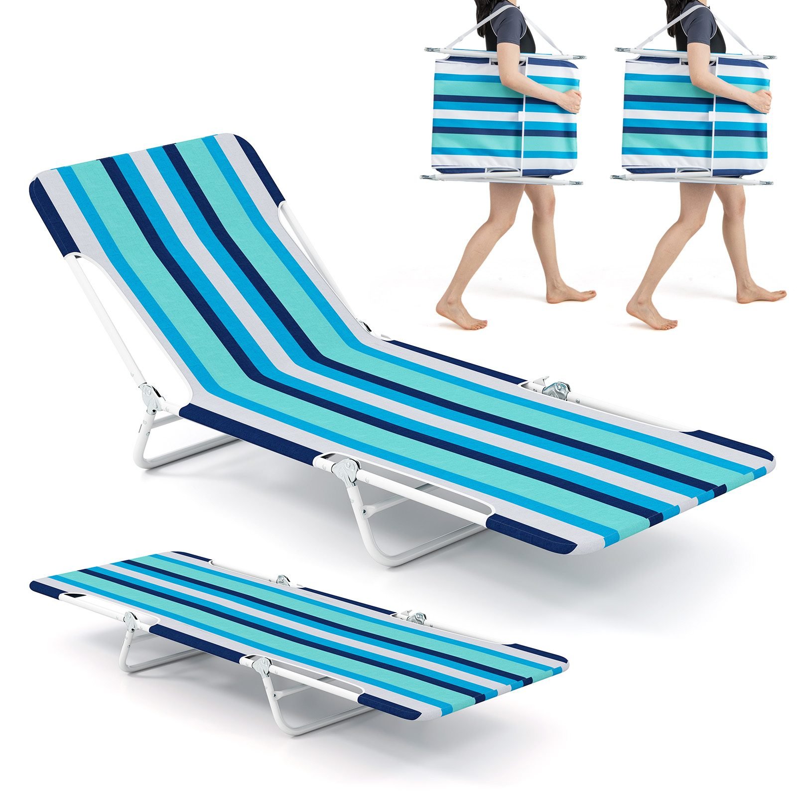 Sulankstoma lauko gultavietė su reguliuojama nugaros ir kojų atramomis (Mėlyna)