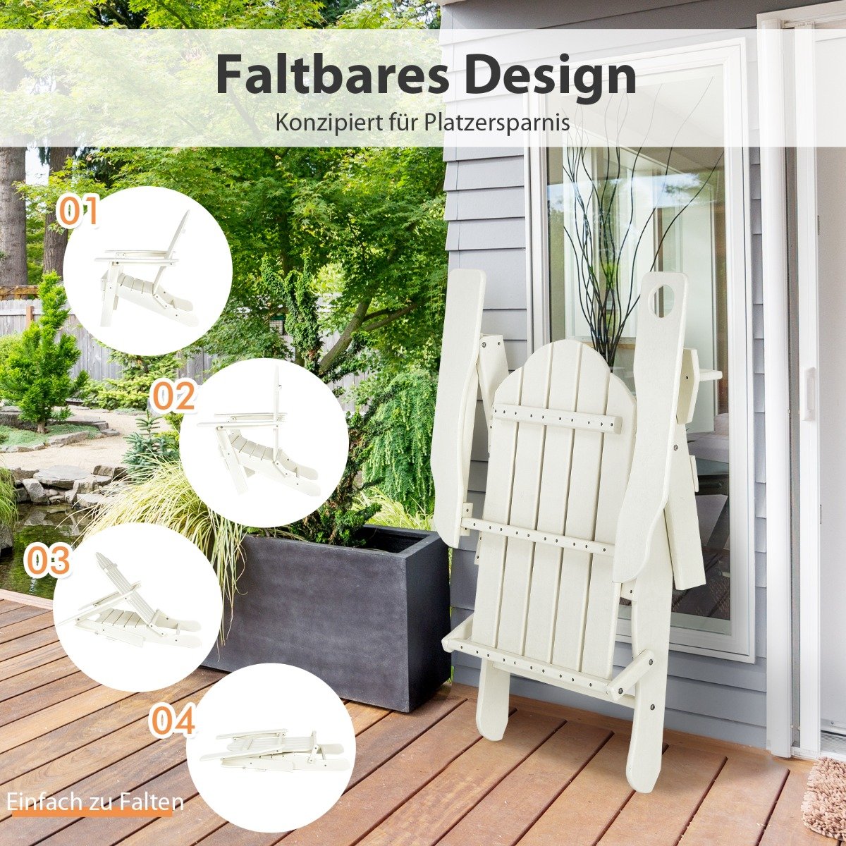Sulankstoma lauko kėdė su gėrimų laikikliu (Balta)
