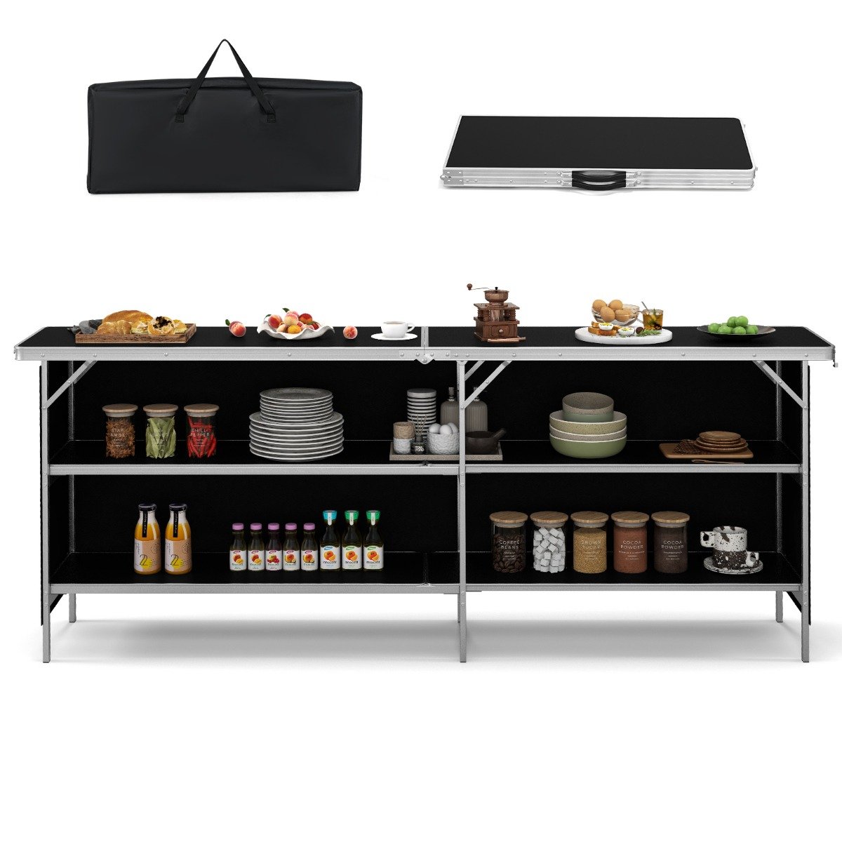 Sulankstoma lauko virtuvė ir stalo komplektas (Juoda)