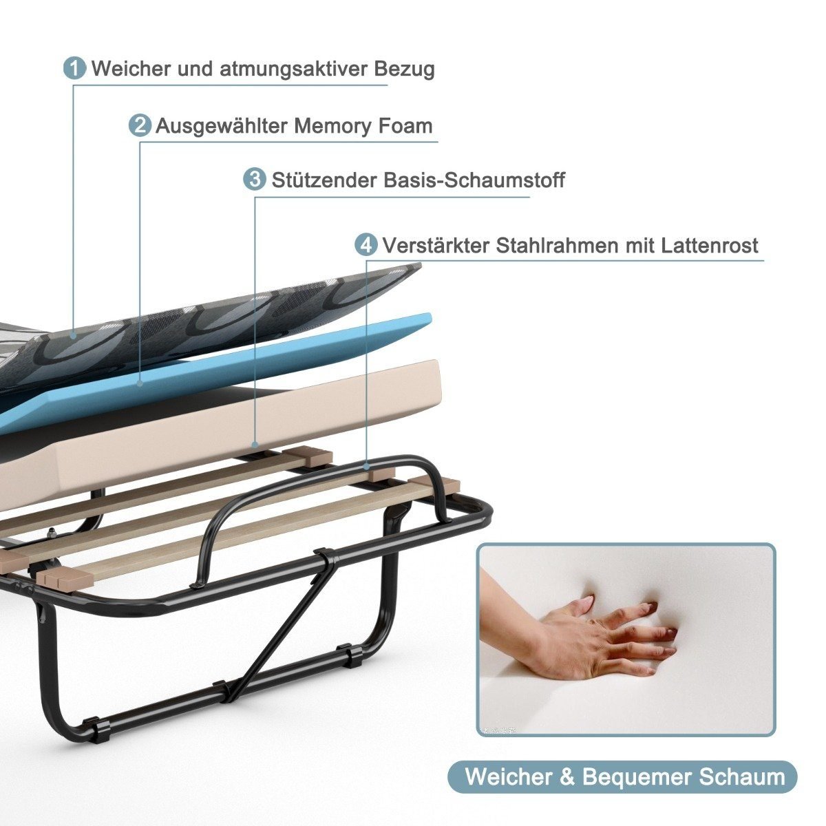 Ieškote patogaus sprendimo svečiams apnakdinti? Pristatome sulankstomą lovą su aukštos kokybės „memory foam” čiužiniu, užtikrinančiu komfortišką poilsį.