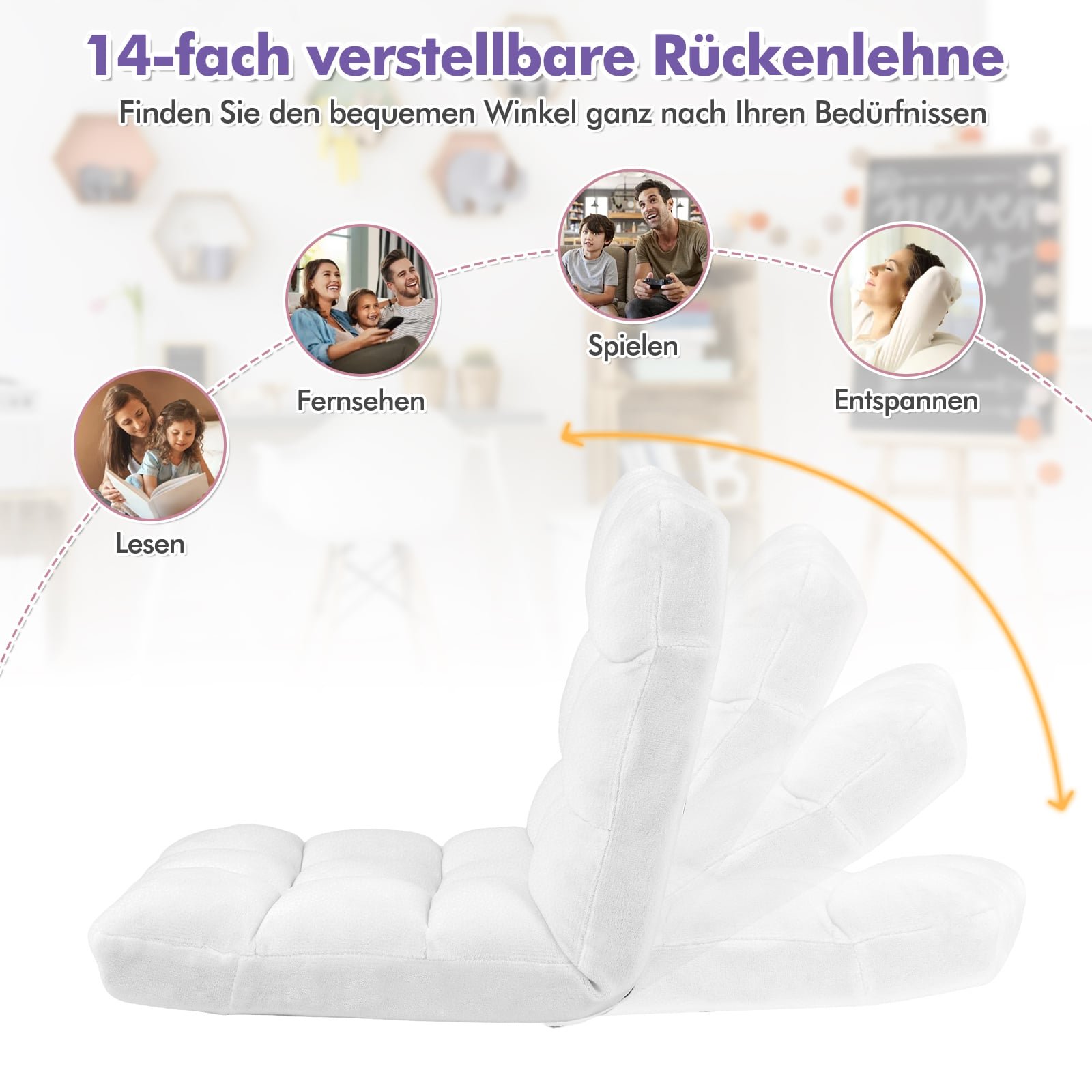 Sulankstoma reguliuojamo atlošo grindų kėdė-sofa (Balta)