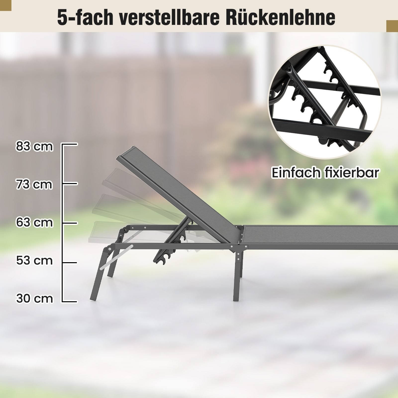 Sulankstoma sodo gultavietė su penkiomis atlošo padėtimis (Pilka)