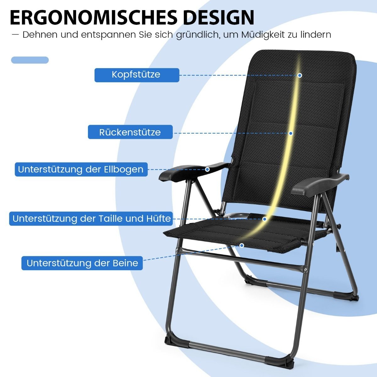 Sulankstoma sodo kėdė su reguliuojamu atlošu (Juoda)