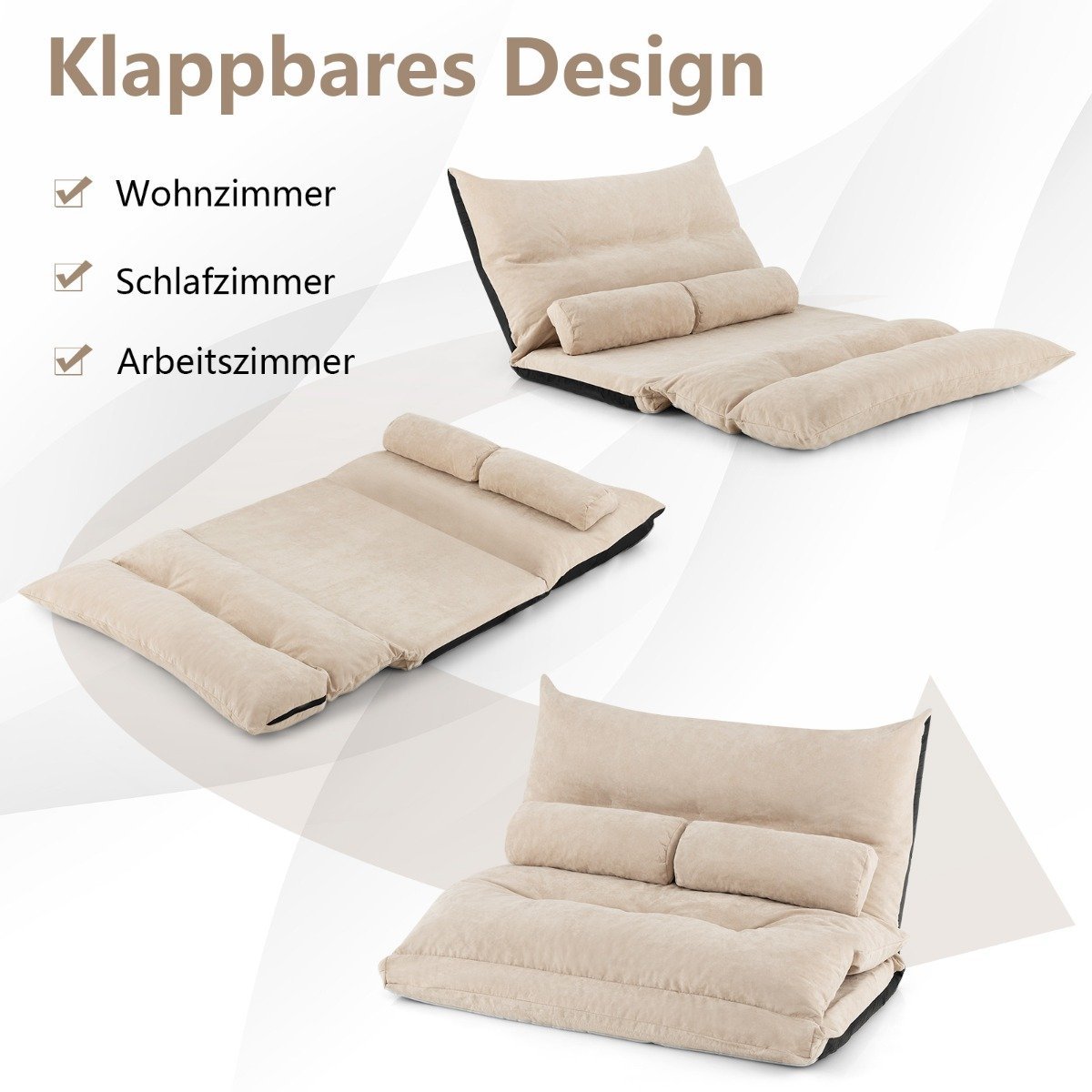 Sukurkite savo jaukų kampelį su šia universalia ir reguliuojama grindų sofa! Nereikalaujanti surinkimo, ši patogi sofa apmušta aukšto elastingumo putplasčiu ir padengta maloniu odai audiniu, užtikrinančiu maksimalų komfortą. Galėsite lengvai pritaikyti atlošą net 42 skirtingomis pozicijomis, atitinkančiomis jūsų poreikius – nuo atsipalaidavimo iki darbo.