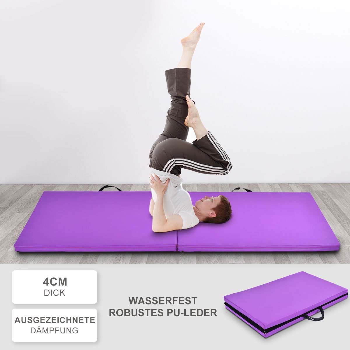 Sulankstomas 4 cm storio gimnastikos kilimėlis (Violetinė)