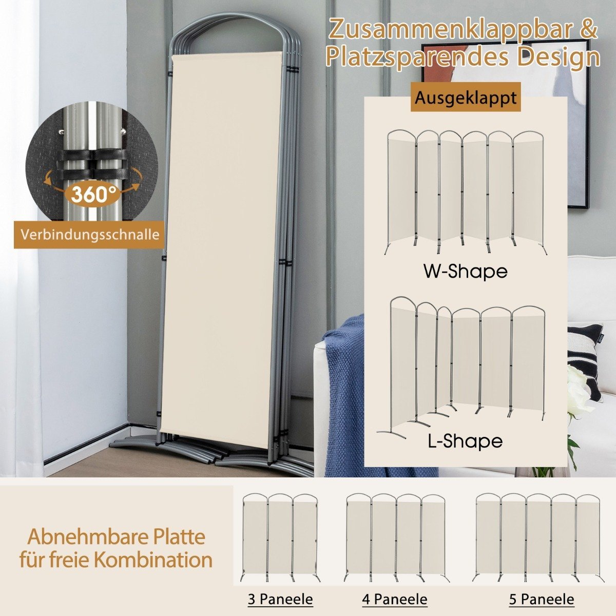 Sulankstomas 6 dalių pertvarų komplektas 331 x 188 cm (Smėlio)