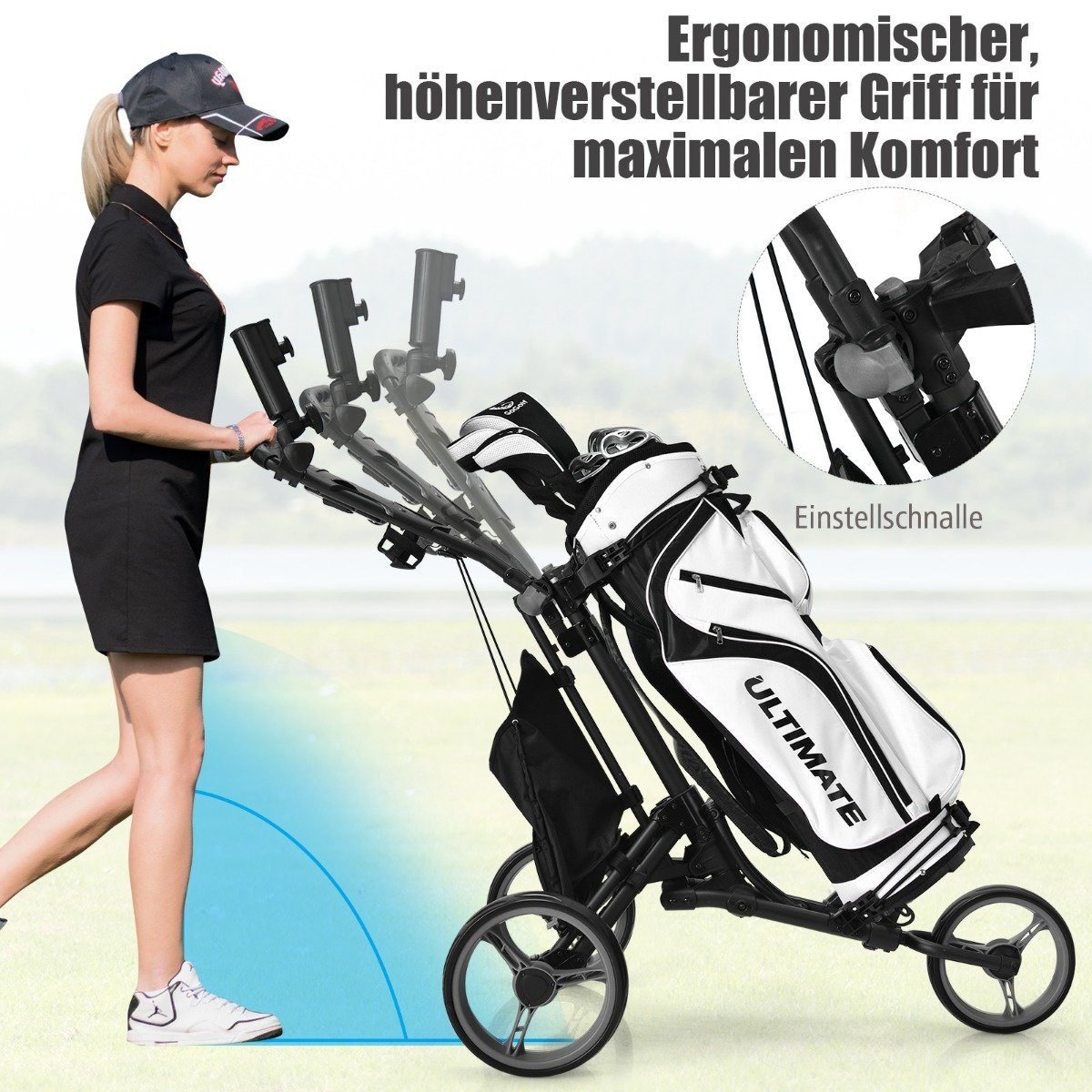 Pagerinkite savo golfo žaidimo patirtį su šiuo universaliu ir lengvai naudojamu golfo vežimėliu. Sukurtas atsižvelgiant į ilgaamžiškumą ir patogumą, jis leis sklandžiai keliauti po aikštyną.