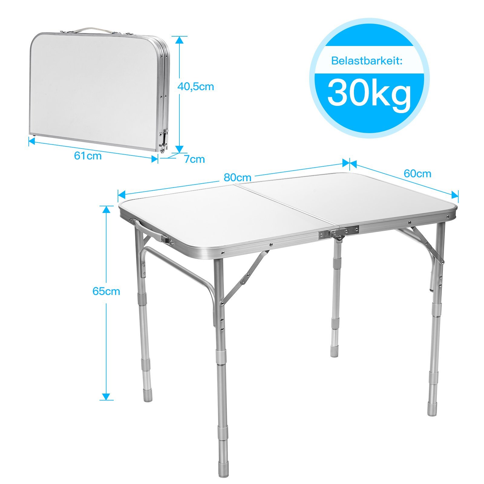 Sulankstomas aliumininis stalas su trimis reguliuojamomis padėtimis (Balta)