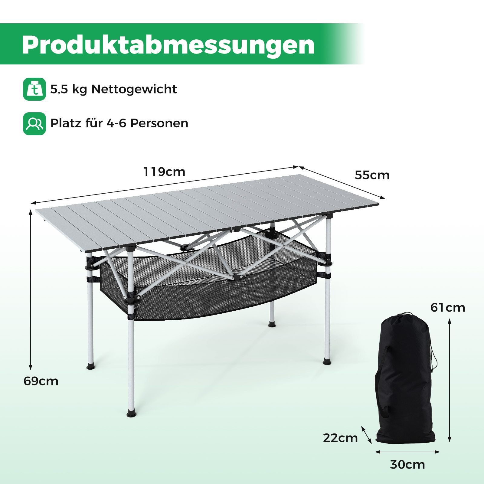 - Nešiojimo krepšio matmuo: 30 x 22 x 61 cm (Ilgis x Plotis x Aukštis)