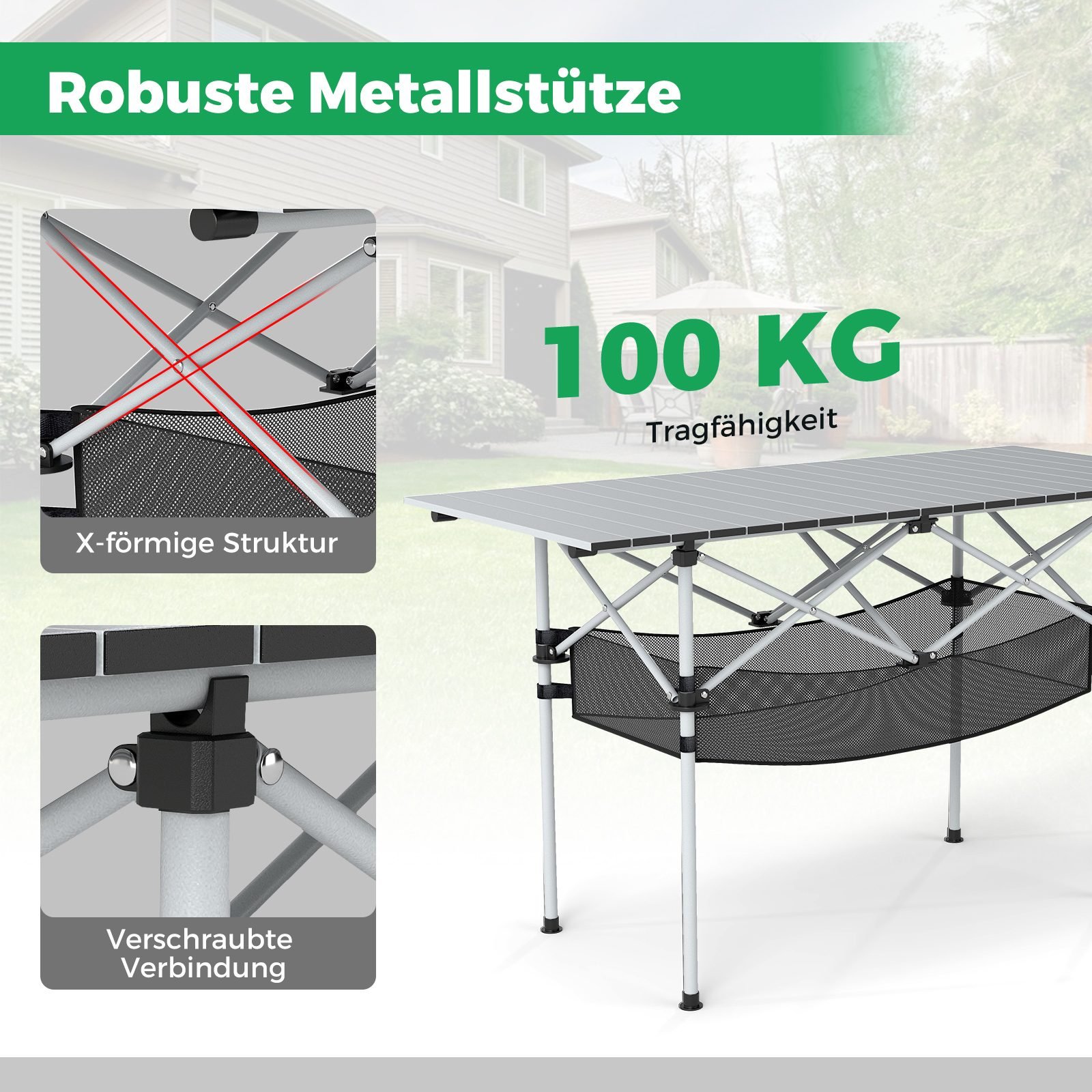 - 1 x Sulankstomas stovyklos stalas