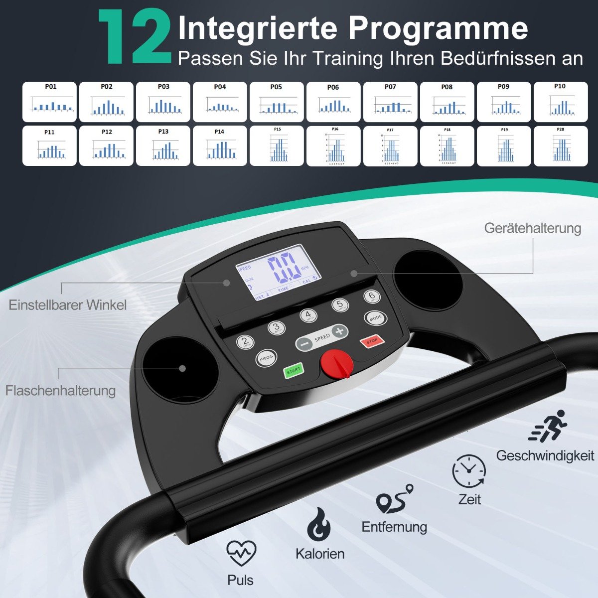 • 12 iš anksto nustatytų programų ir 3 atgalinės atskaitos režimai skirtingiems treniruočių tikslams.