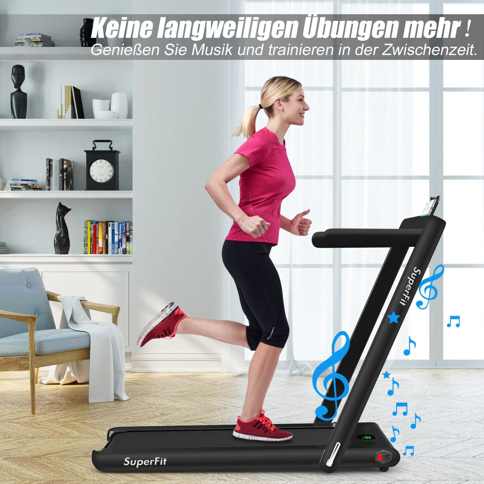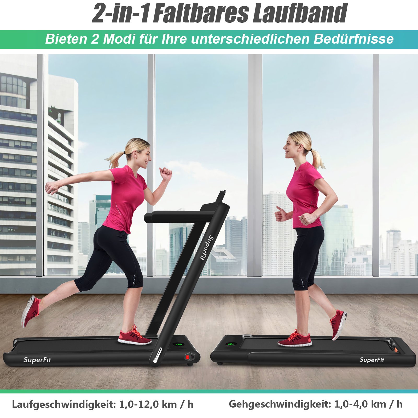 - Dvitaigis 2-in-1 dizainas: Naudokite su rankenomis (1-12 km/h) intensyvioms treniruotėms arba be jų (1-4 km/h) lengvam pasivaikščiojimui.