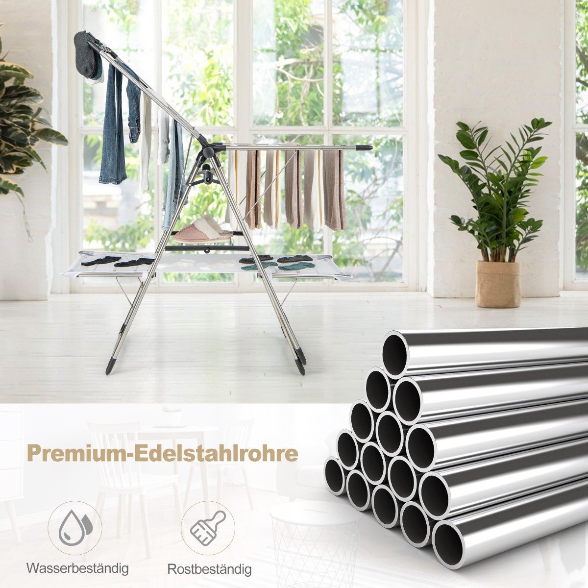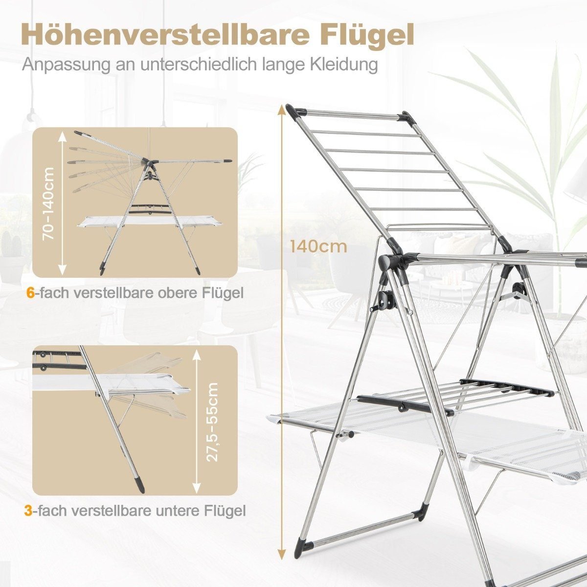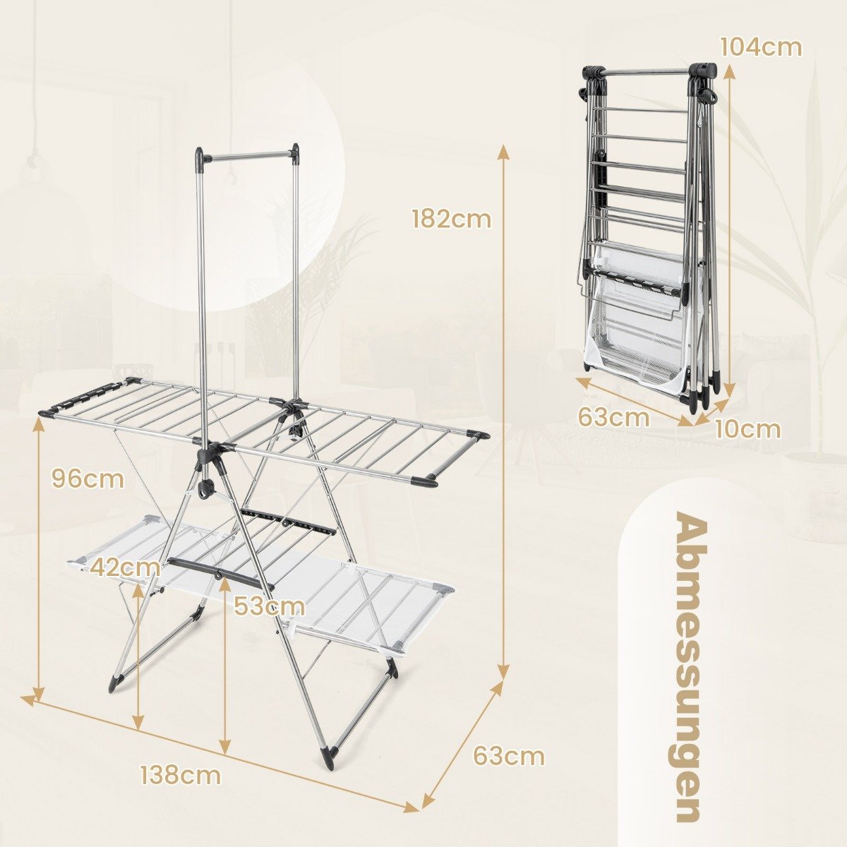 Patobulinkite savo skalbinių priežiūros rutiną su šiuo universaliu, sulankstomu džiovinimo stovu. Sukurtas maksimaliam patogumui ir efektyvumui, jis suteikia pakankamai vietos tvarkingai išdžiovinti visus jūsų skalbinius.