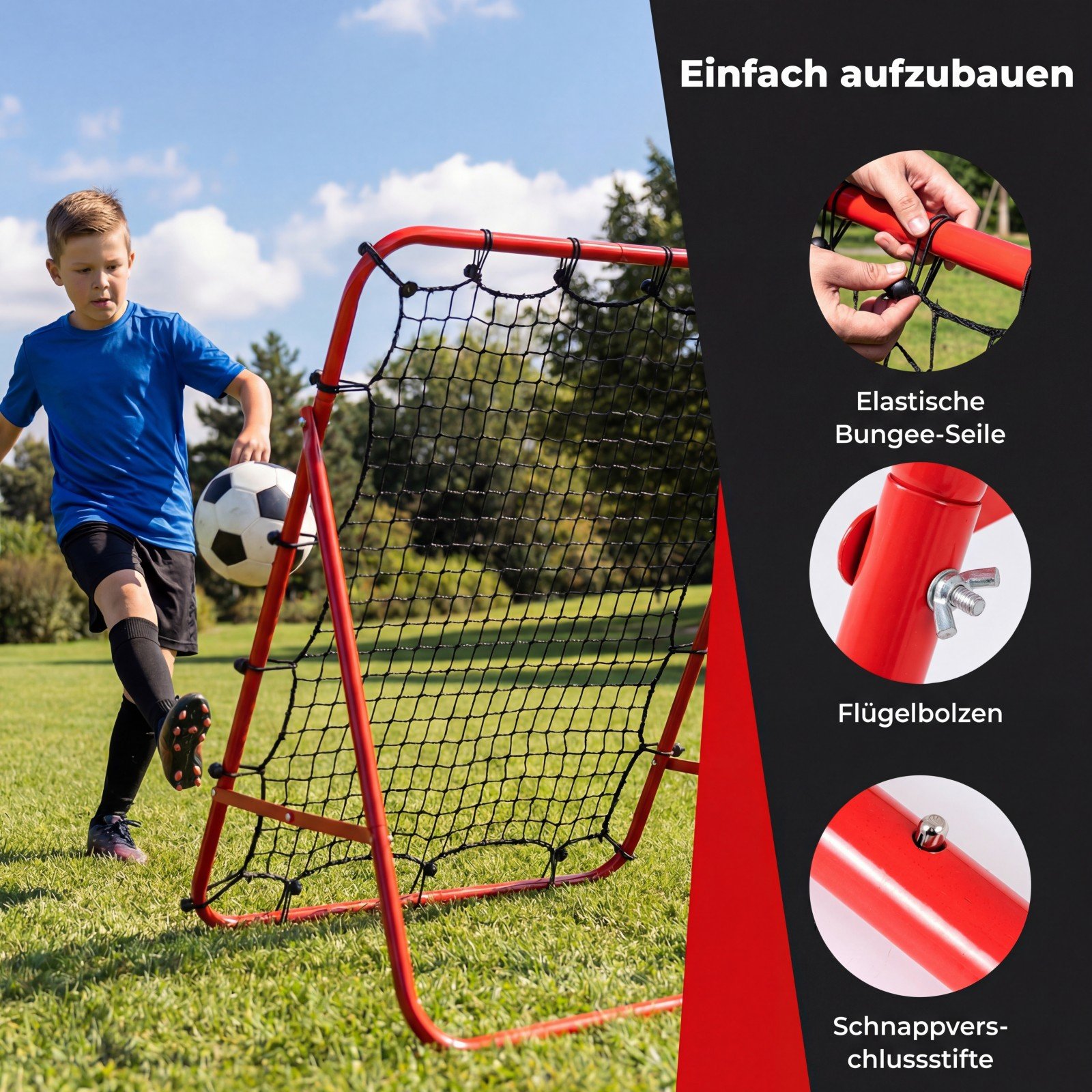 Sulankstomas futbolo atšokimo treniruoklis su 5 reguliuojamais kampais (Raudona)