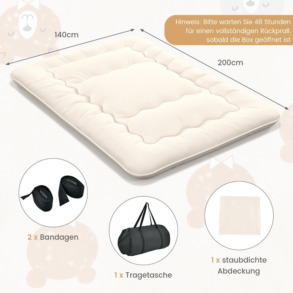 - Daugiafunkcis panaudojimas: tinkamas kaip čiužinys ant grindų, tatamio kilimėlis, žaidimų zona vaikams ar kelioninis čiužinys.