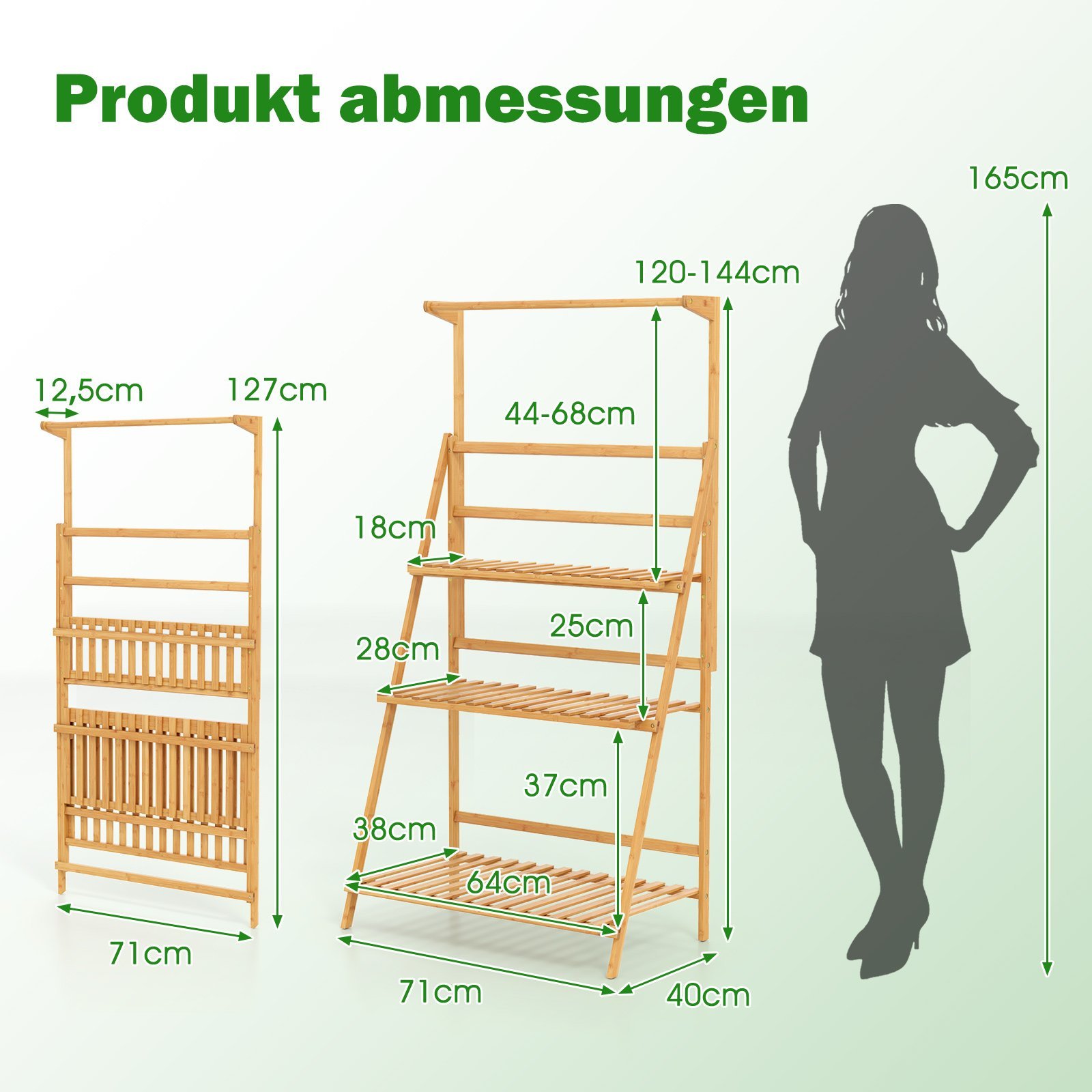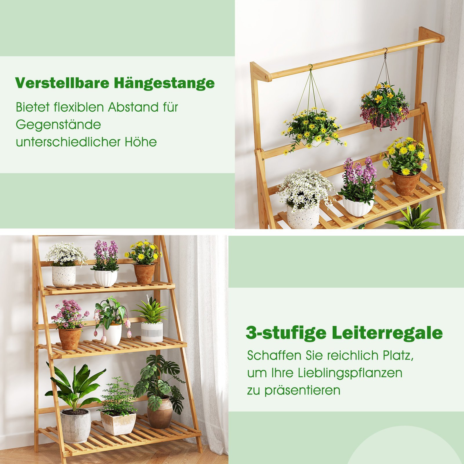 Sulankstomas gėlių stovas su 3 pakopomis ir reguliuojamu kabinimo strypu (Natūrali)