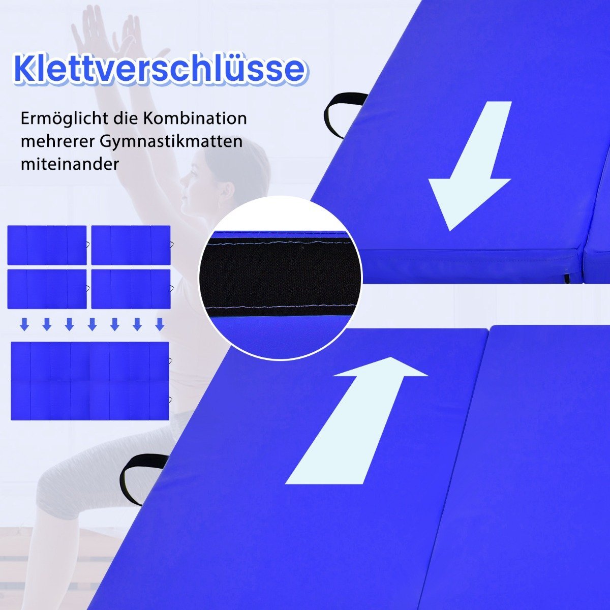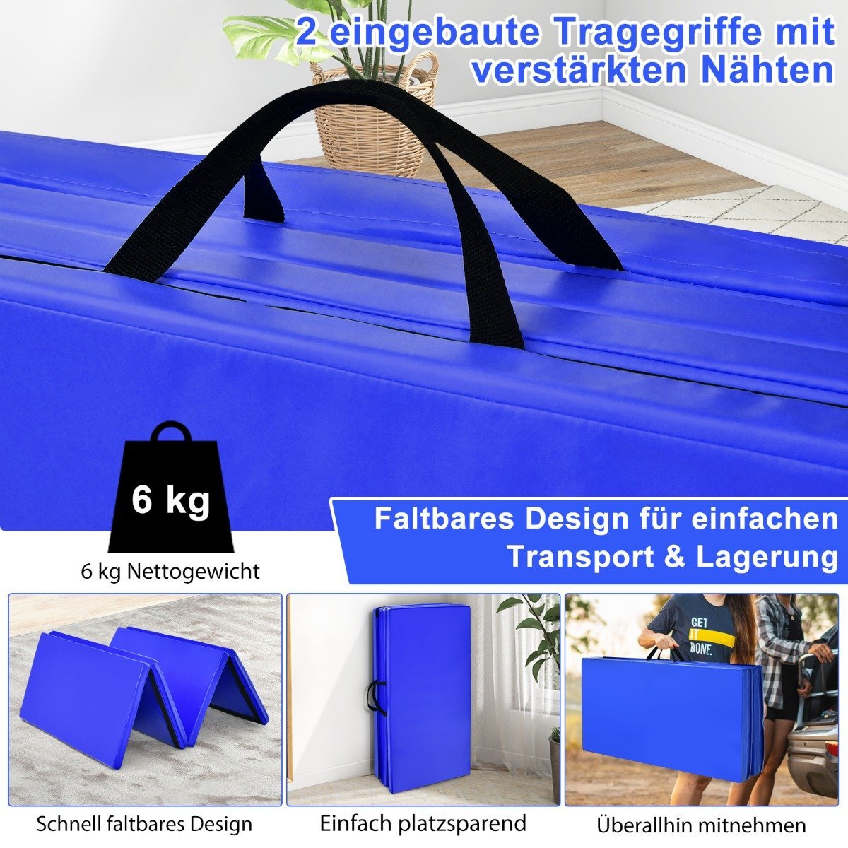 Sulankstomas gimnastikos čiužinys 240 x 120 x 5 cm su rankenomis (Mėlyna)