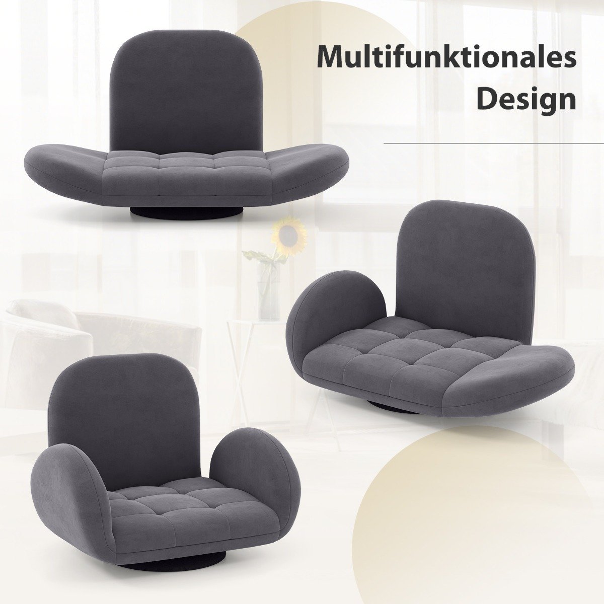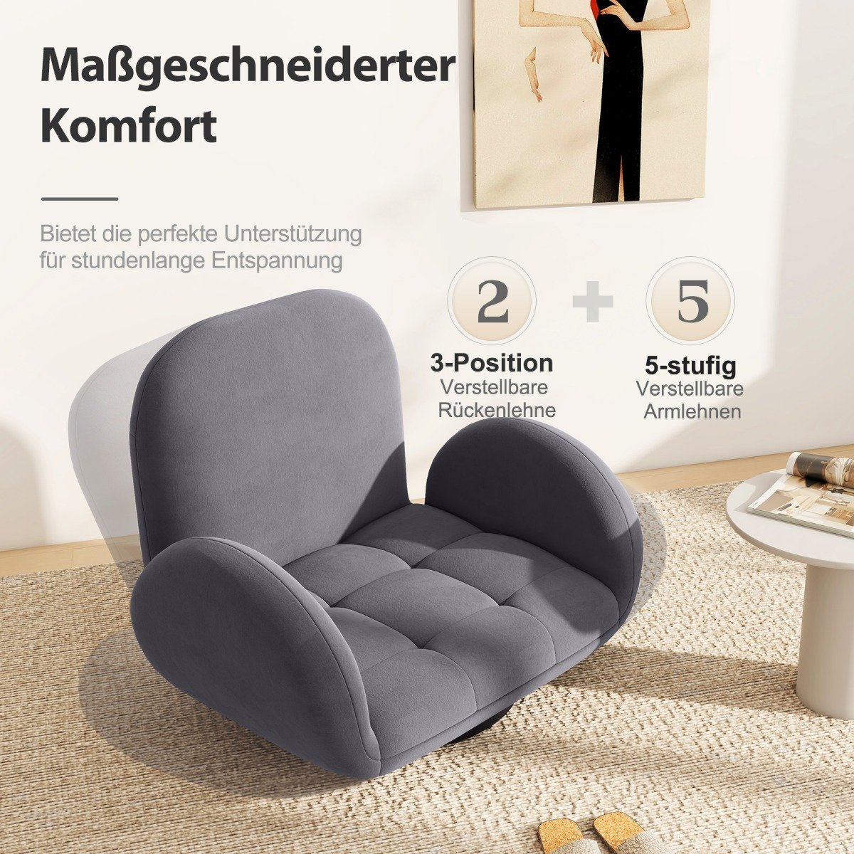 Sulankstomas grindų krėslas su reguliuojamu atlošu ir porankiais (Pilka)