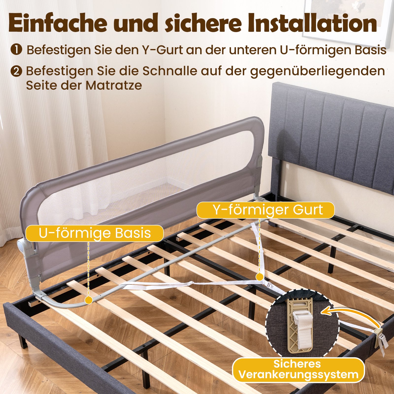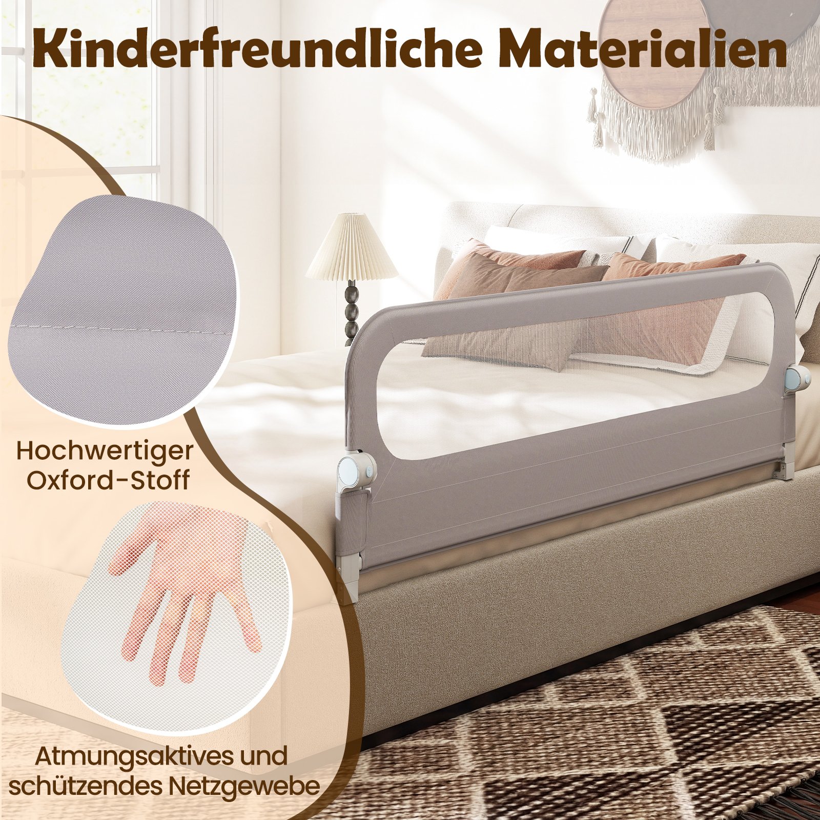 - Skatina saugų miegą, užkertant kelią atsitiktiniams nukritimams.