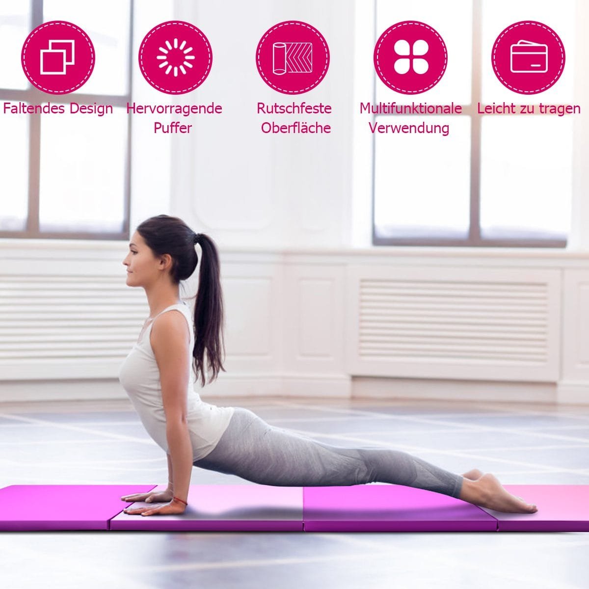 Atraskite naujas treniruočių galimybes su mūsų patogiu ir daugiafunkciu sulankstomu čiužinuku. Jis puikiai tinka įvairioms namų treniruotėms, užtikrinant maksimalų komfortą ir saugumą.